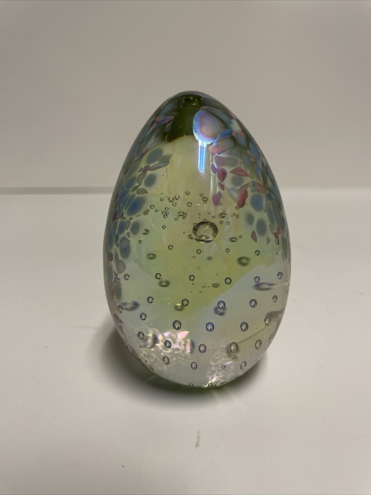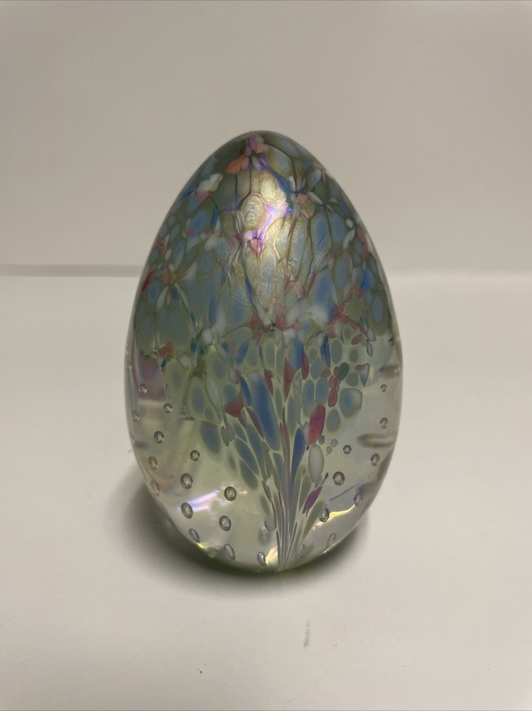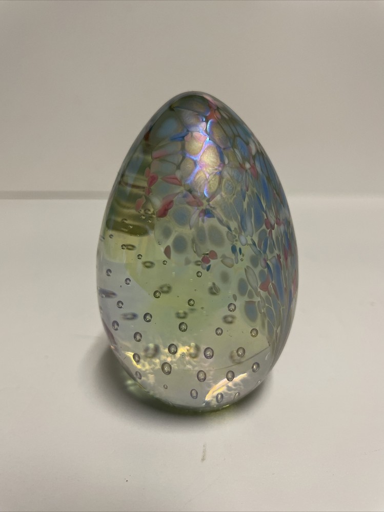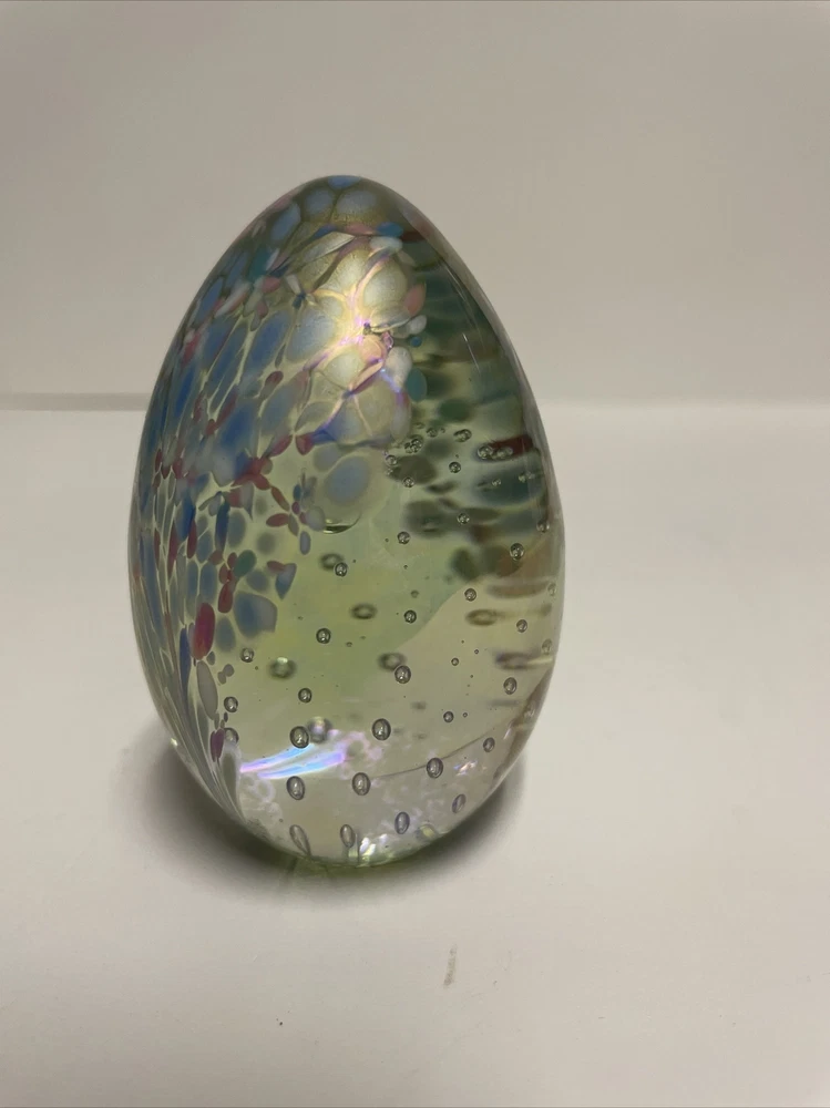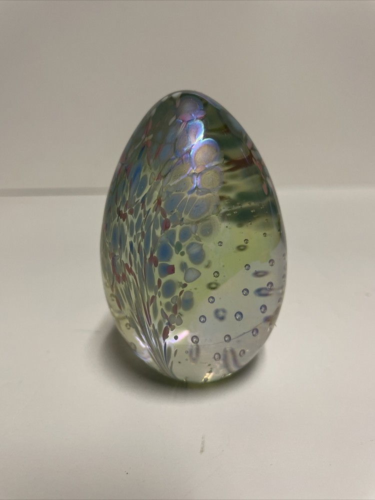 Up for your consideration is this Glass Eye Studio MSH Signed Iridescent Spots Egg! 3 1/4" Paper weight Dated 1987 Nice Preowned condition Pictures are of the actual item you will receive Should you have any questions please ask prior to purchase. Thank you!
