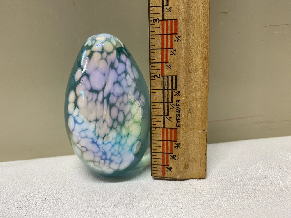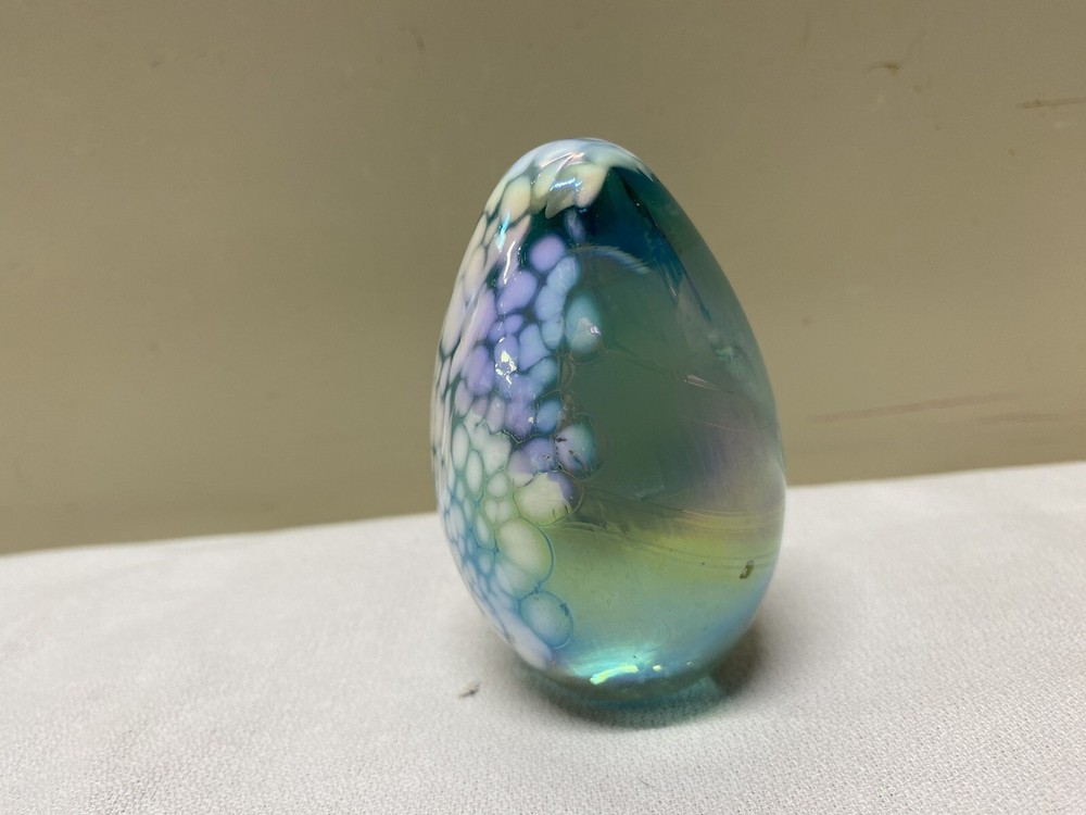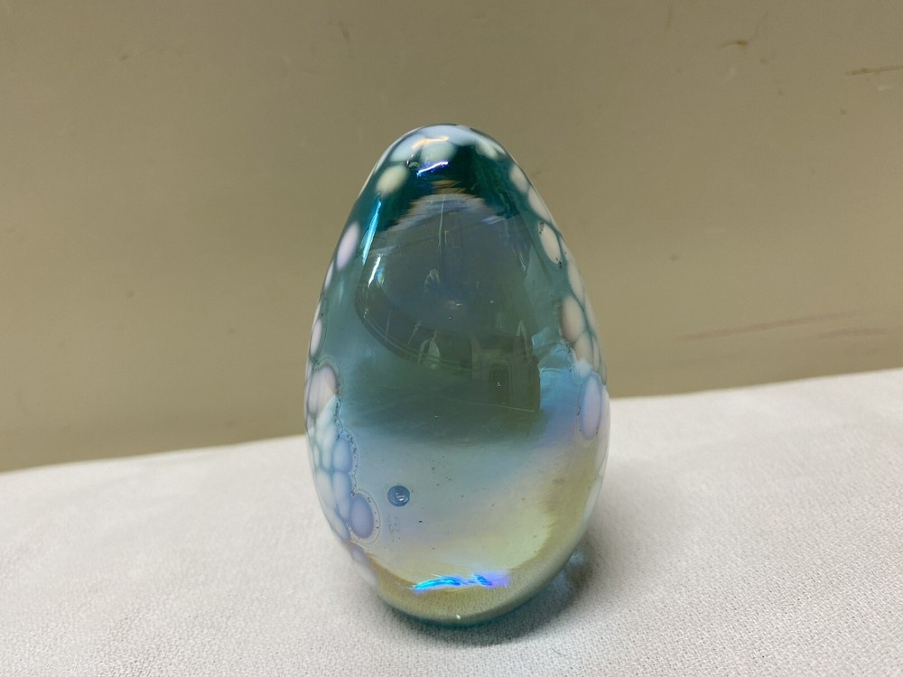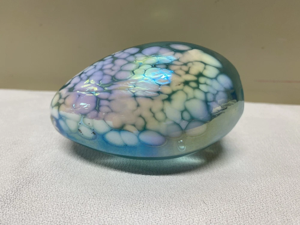 Absolutely stunning! The iridescent colors dance in the light, and the hand-blown speckled design gives it such unique charm. Perfect as a paperweight or decorative accent—arrived safely and looks even better in person. Love it!
