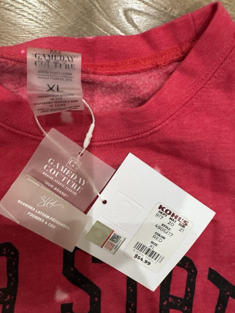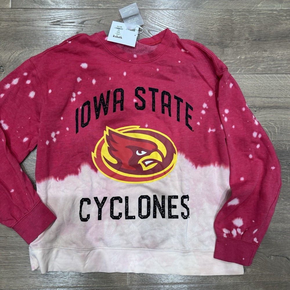 The product is a Gameday Couture Cardinal Iowa State Cyclones Twice As Nice Faded Dip-Dye sweatshirt in size XL, designed for women who are fans of the Iowa State Cyclones football team. This officially licensed sweatshirt is in a vibrant red color with the team logo, making it a stylish and comfortable choice for showing support during the regular season games.