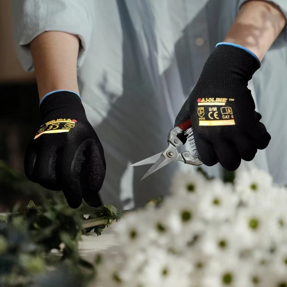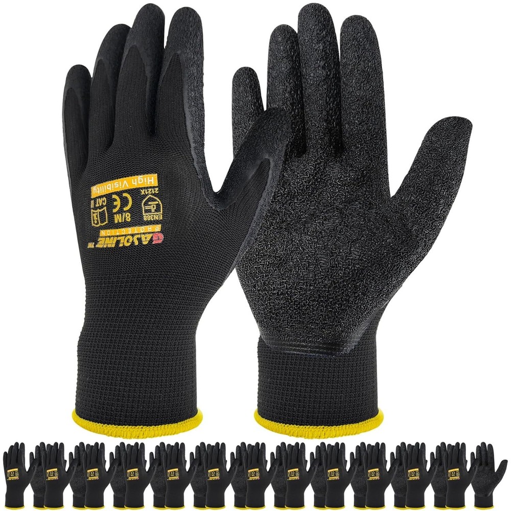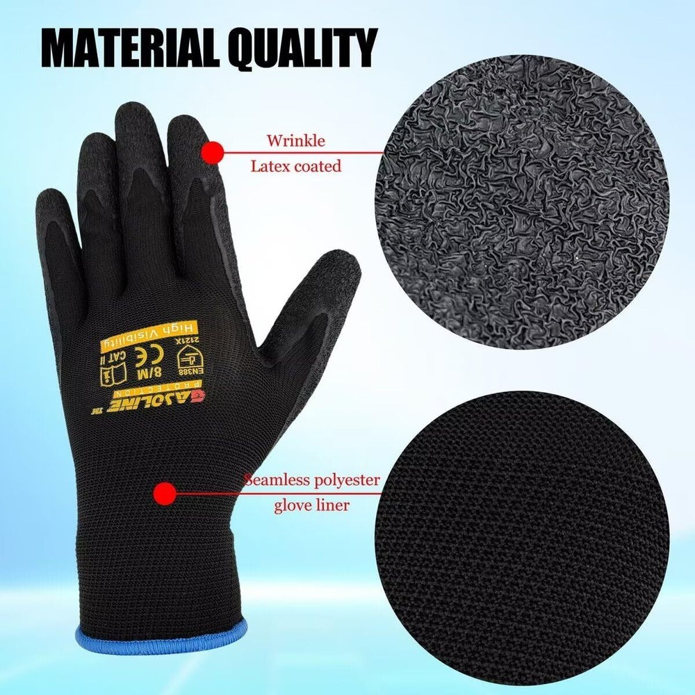 Gasoline 13 Gauge Polyester Latex Crinkle Palm Dipped Black Gloves for Men Women General Multi Use Construction Warehouse Gardening Assembly Landscaping /12Pairs Pack Material Polyester, Nylon, Latex Brand Gasoline Size Small, Medium, Large, XL Color Black-12pair Special Feature Wheels, Hose Size, Electrical, Outlets Natural latex coating Comfortable Work Gloves: Gasoline Men's Work Gloves feature a tight, seamless lining for a comfortable, lightweight feel and excellent breathability to keep hands cool. The low profile feature radically enhances flexibility and fits snugly across all fingers, making it suitable for both men and women for general outdoor work. Abrasion Resistance: High-performance synthetic latex crinkle coating on the palm increases abrasion resistance and provides extra grip when grabbing construction materials and outdoor work tools. Convenience: The work gloves designed by Gasoline are very convenient when used outdoors. There is no need to take off these touch screen work gloves when operating touch screen devices, significantly improving your work efficiency. Multipurpose Machinery Glove: Gasoline safety work gloves are ideal for light construction work, machine work, plumbing, gardening, warehouse packaging handling and more