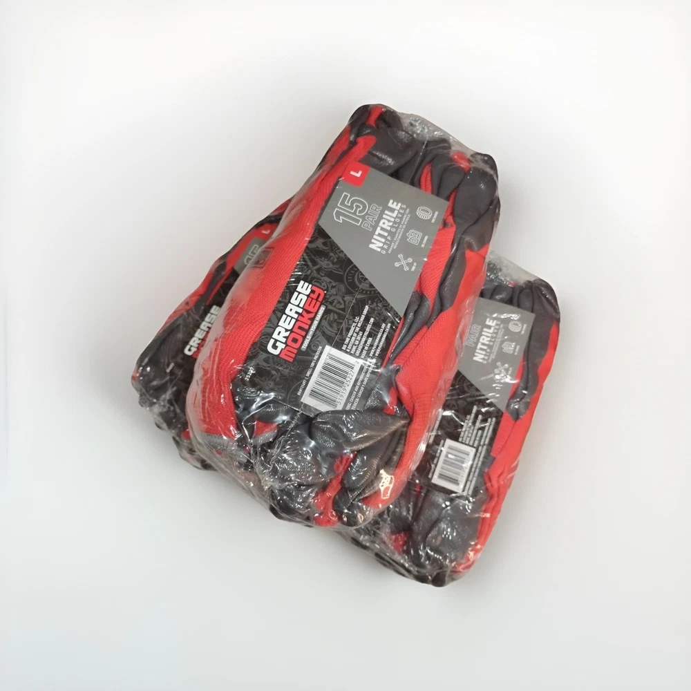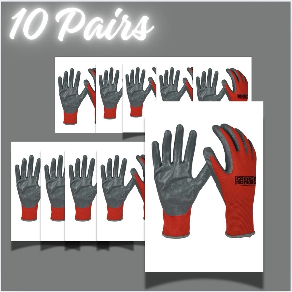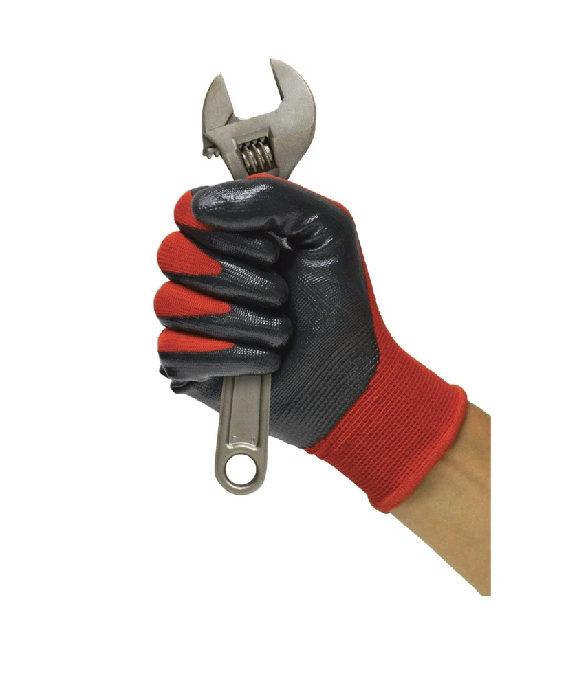 For most jobs around the house, yard or job site, this nitrile dipped Glove is a great solution. The nitrile-dipped palm and fingers provide an improved grip. The knit backing allows the glove to Breath and helps prevents debris from entering the wrist. This glove will stretch, allowing it to be a single solution for a "one-sized-fits-all" Fit. Additionally, the latex-free nature of this glove allows it to be worn by those with latex allergies. Nitrile coated gloves are perfect for a variety of jobs. The nitrile dip coating provides improved grip, while the knit back allows your hand to Breath while working. This 15 pack is a great value. Gloves | Tools for Your Hands. Maximum Hand Protection and Dexterity for Automotive Jobs and More Nitrile-Coated Work Gloves combine a durable, ballistic nitrile coating with a breathable nylon shell for a glove that is both strong and comfortable | 15 Pairs of Nitrile Coated (Latex Free) work gloves | Size: One Size Fits Most Protects hands and provides tactile gripping when working around oil and grease - perfect for changing oil, changing tires, replacing fluids, and spark plugs Foam Nitrile coating: latex-free coating provides additional protection while resisting punctures and abrasions Snug fit wrist keeps out dirt and debris