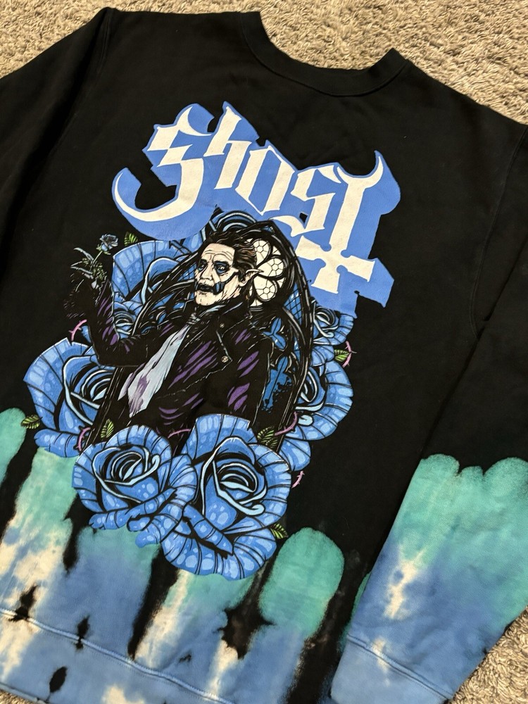 Ghost Cardinal Copia Blue Roses Darkness Dip-Dye Crewneck Merch Rock XL Measurements: 23 inches pit to pit, 30 inches top to bottom, 22 inches pit to wrist. 80% cotton, 20% polyester