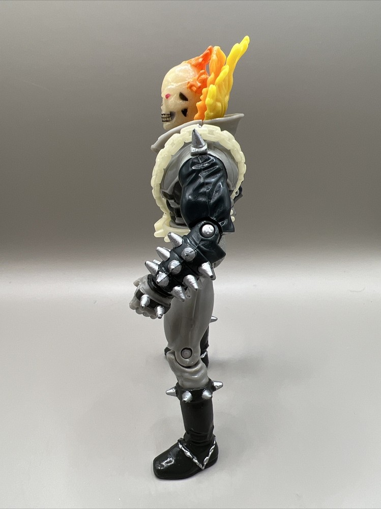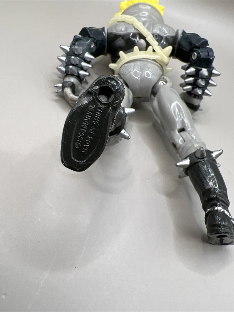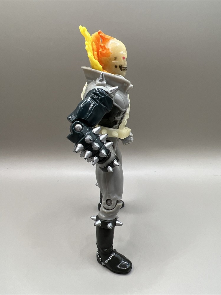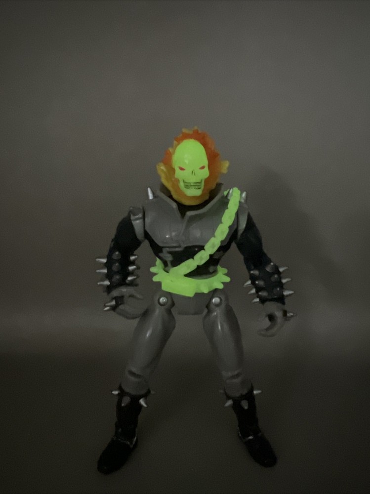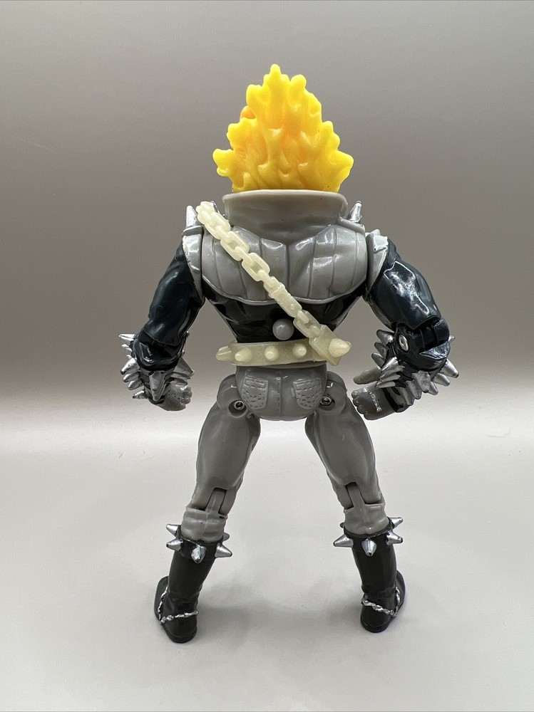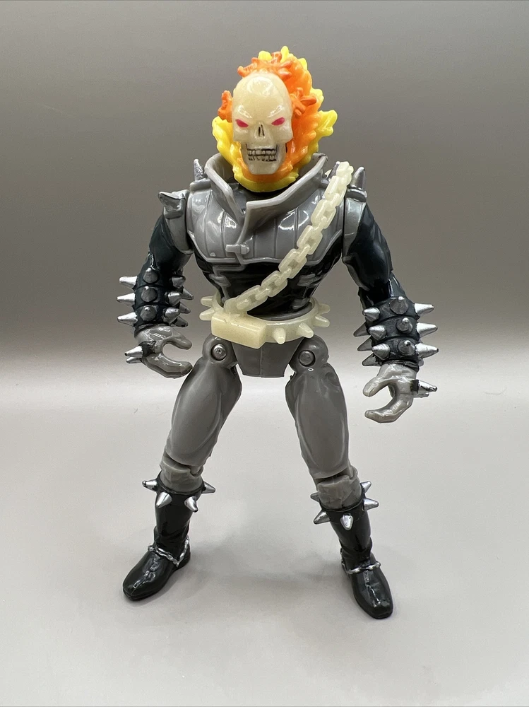 This vintage Ghost Rider action figure from 1995 is a must-have for any Marvel fan. With its chain whipping action and flame glow-in-the-dark feature, it's sure to make a great addition to any collection. The figure includes fan-favorite characters such as Deadpool, Captain America, Wolverine, and Venom, to name a few. The ToyBiz brand ensures an original licensed reproduction, while the TV, Movie & Video Games theme and Movie & TV genre make it a unique and sought-after item. Don't miss your chance to add this rare Ghost Rider action figure to your collection.
