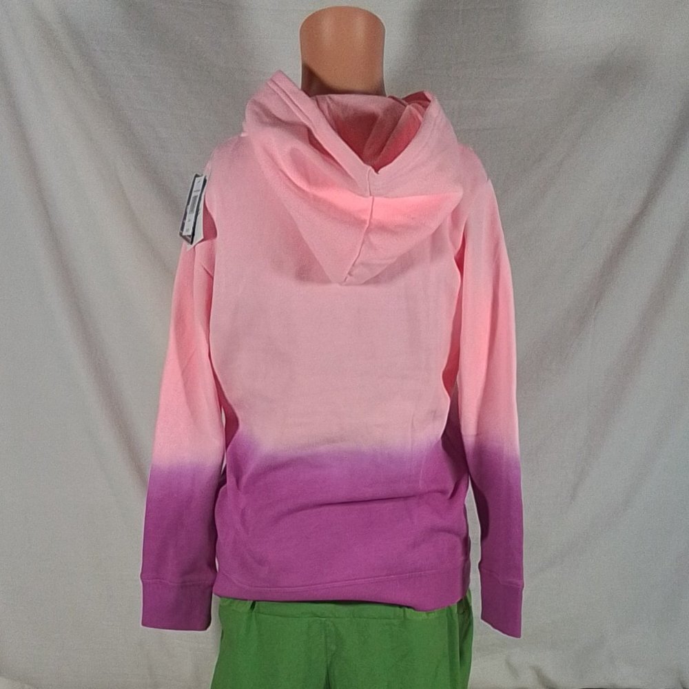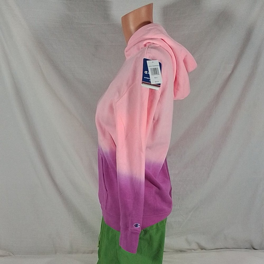 Girl's Champion Pullover Dip Dye Hoodie with Script Logo Size: Large Color: Dip Dye Pink Candy Raspberry Shock with screen print script logo Ribbed hem and cuffs Kangaroo pocket Hood Embroidered Champion logo on left sleeve Fabric: 60% Cotton 40% Polyester Machine wash on gentle cycle, tumble dry low Item is New with Tags Photos are of actual item for sale. Color may vary due to photo quality or screen resolution. Free Shipping!