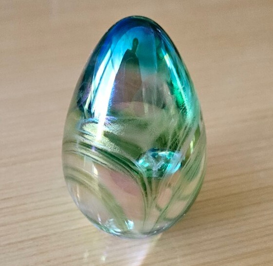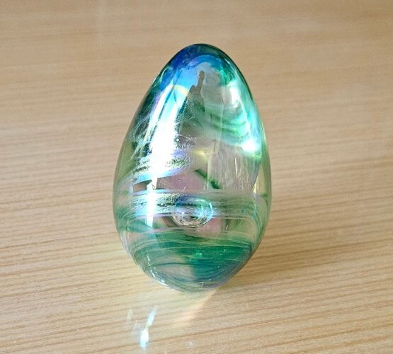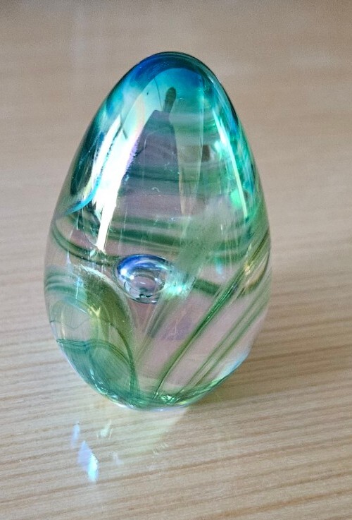 This unique egg-shaped paperweight is a stunning piece of art created by Glass Eye, featuring a beautiful flower theme. It would also make a great Easter decor or gift. The piece was crafted with high-quality glass material and is signed by the artist, making it a perfect addition to any collector's set. The paperweight measures 2.5 inches and was handmade with great care using the production style of art glass. The paperweight's era is from the late 20th century, specifically from 1990-1999. The brand name is "GES 97" and has multiple colors, making it a great decorative piece that can complement any room's color scheme. No chips or cracks.