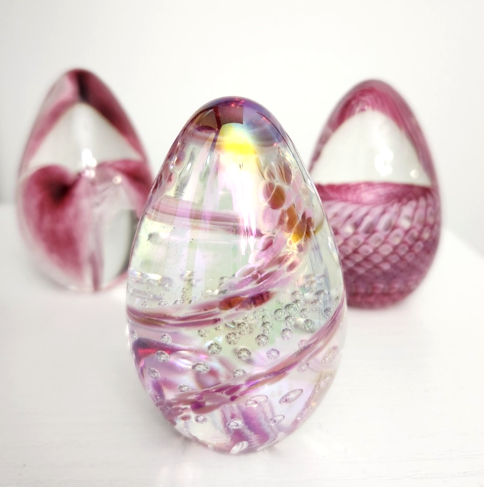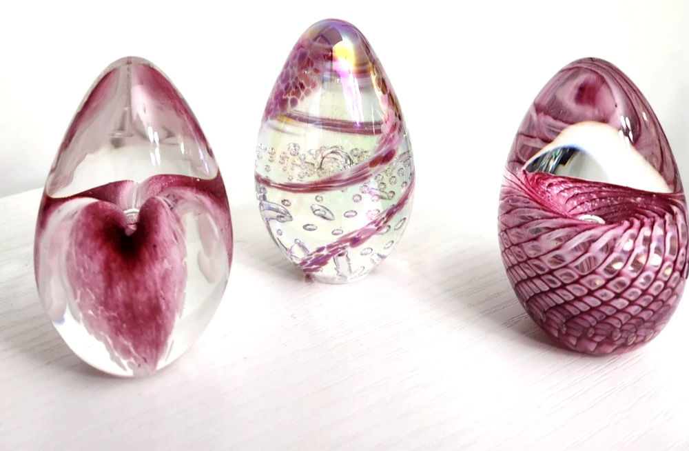 Glass Eye Studio (GES) SET OF THREE pink egg paperweights Vintage 90's Approximately 2.75" tall 5 Star Feedback Fast Shipping with Tracking Number U.S.A . Seller