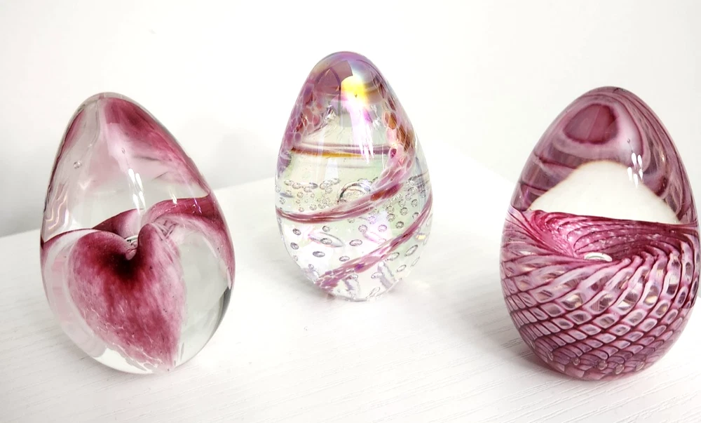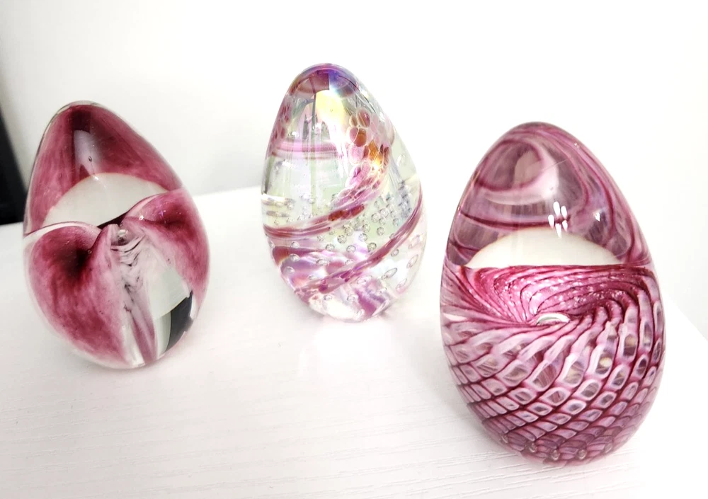 These gorgeous pink glass egg paperweights are stunning! The vintage 90s design has such a delicate, artistic touch—perfect for display or as a unique gift. The set of three adds variety, and the craftsmanship is top-notch. Fast shipping and great packaging too! Highly recommend for collectors or anyone who loves beautiful glass art.