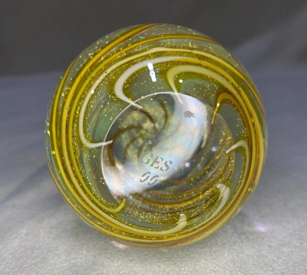 Glass Eye Studio GES Hand Blown Art Glass PEAR Paperweight 1999. Approximately: 4 1/2" height 2 1/2" wide Over 1.2lbs No chips or cracks. If you have any questions, please ask. Thankyou....