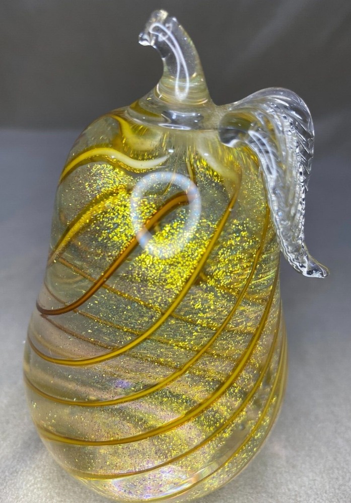 Glass Eye Studio GES Hand Blown Art Glass PEAR Paperweight 1999. Approximately: 4 1/2" height 2 1/2" wide Over 1.2lbs No chips or cracks. If you have any questions, please ask. Thankyou.