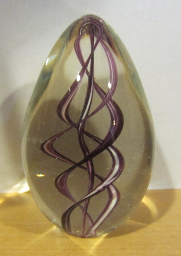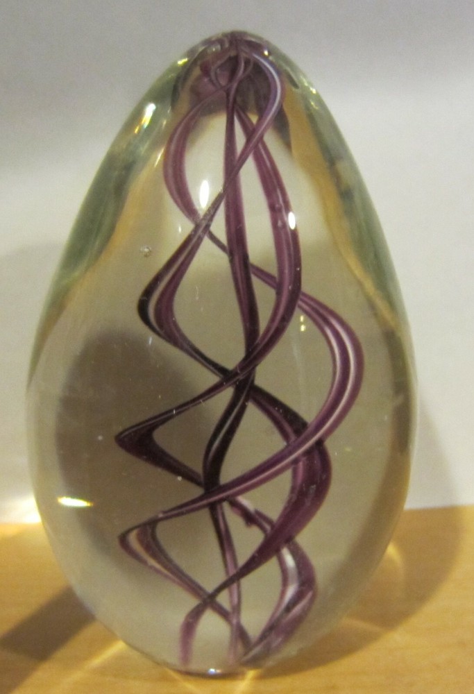 Up for auction: Glass Eye Studio GES purple swirl Egg Shaped Paperweight '99. very nice. have several other on auction, please look and always happy to combine shipping.