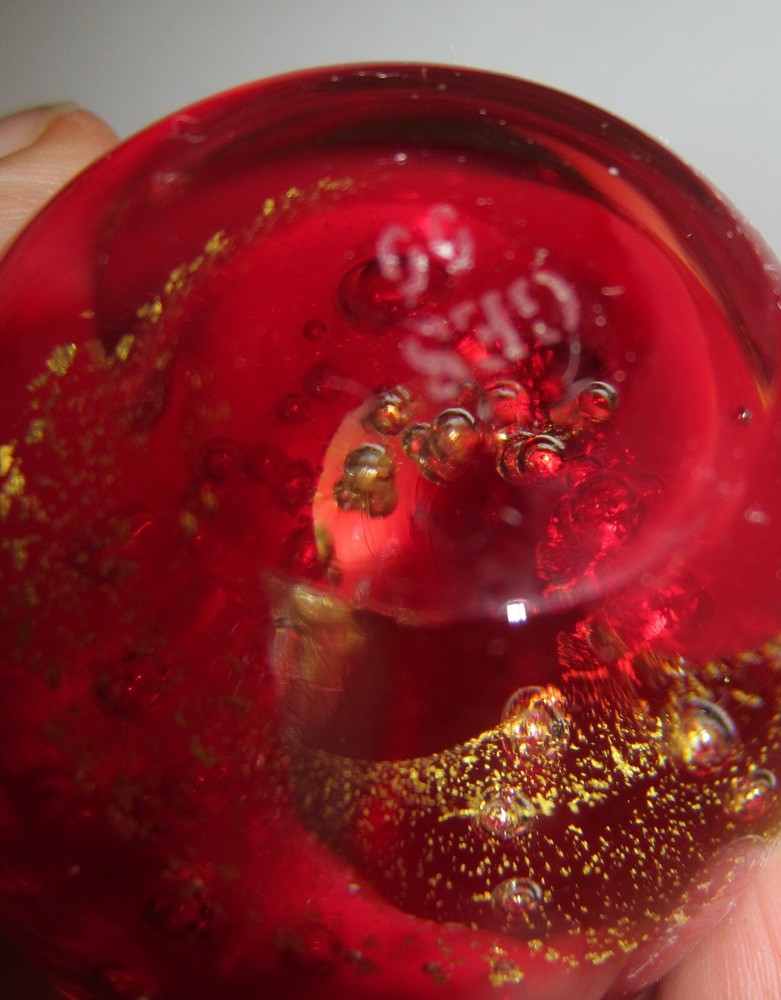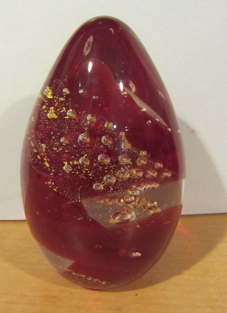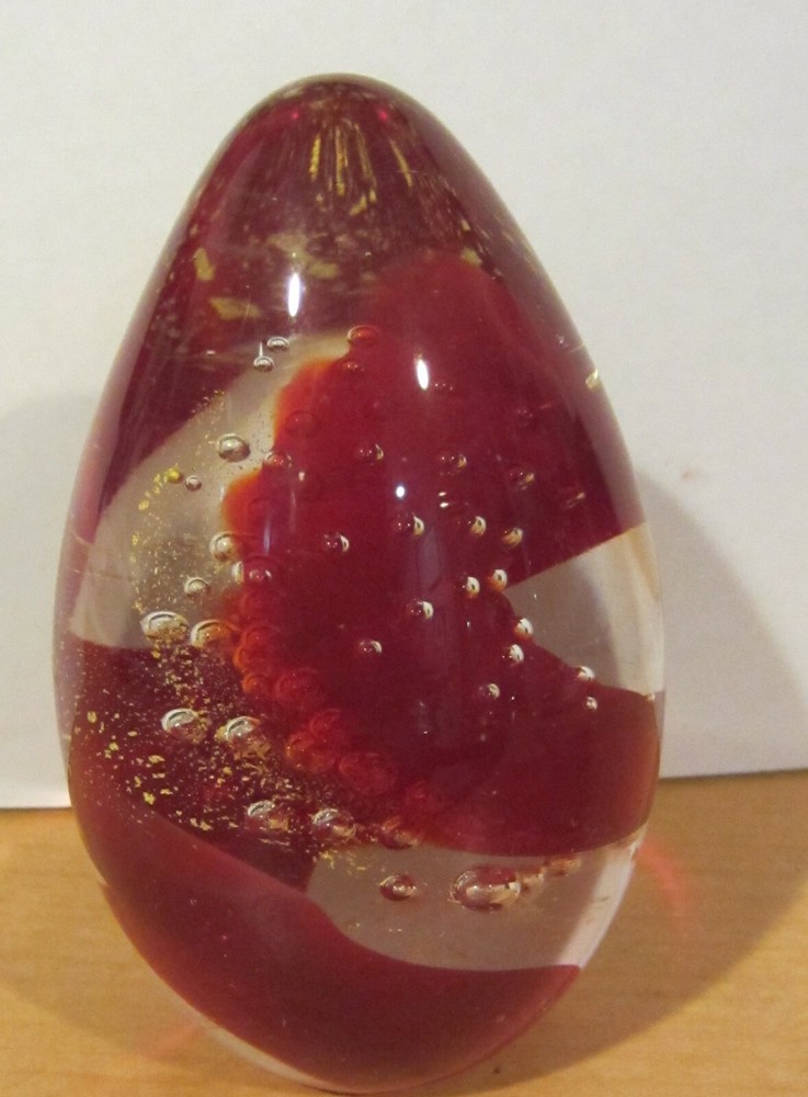 Up for auction: Glass Eye Studio GES red and bubbles Egg Shaped Paperweight 2000. very nice. have several other on auction, please look and always happy to combine shipping.
