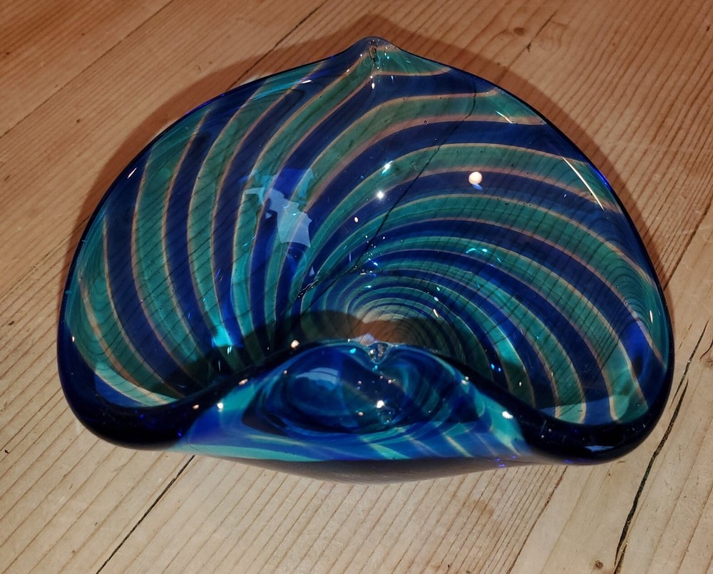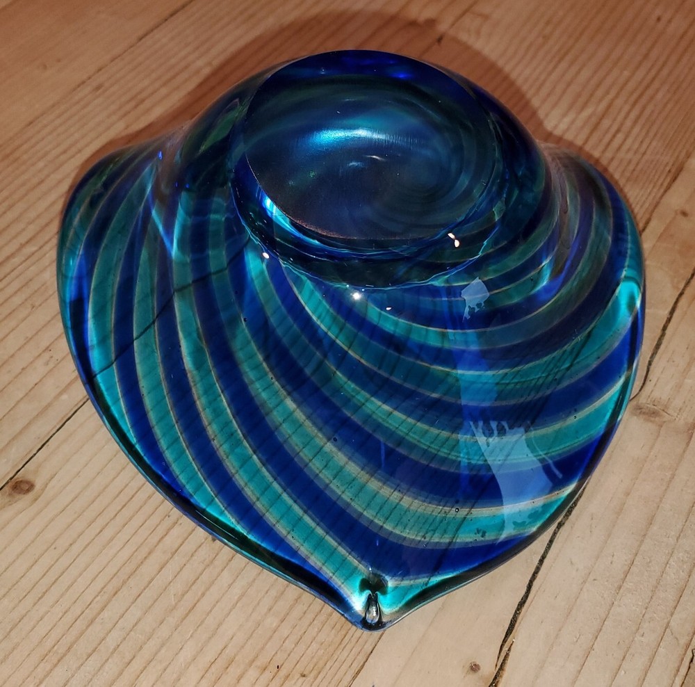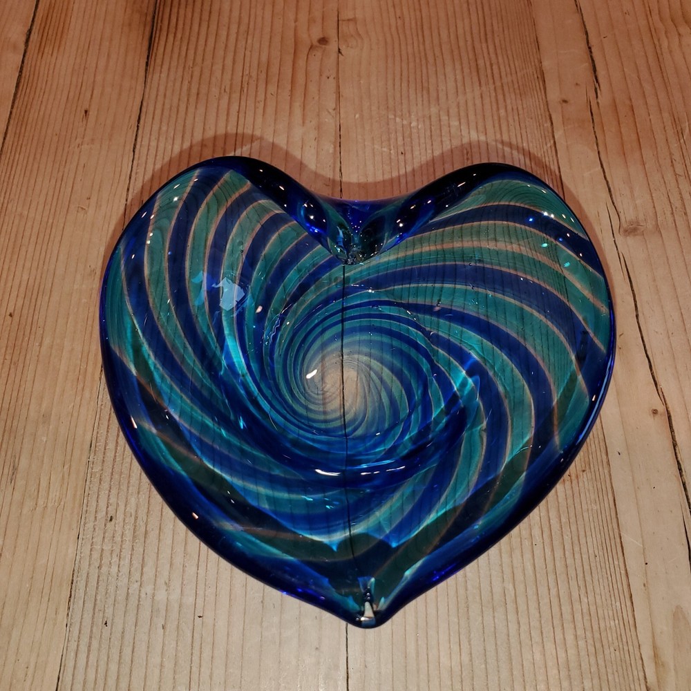 Glass Eye Studio Heart Shaped Blown Glass Trinket Dish Aqua / blue swirl Mint condition (giftable) ... smoke and pet free home