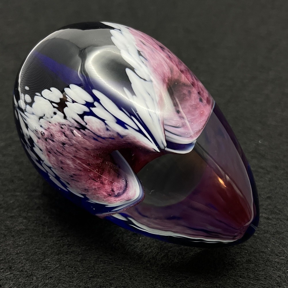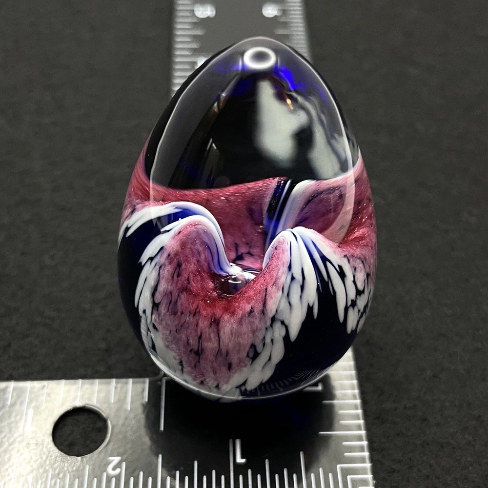 Glass Eye Studio Pink Blue White Swirl Egg Shaped Paperweight Signed , Dated- 1996?