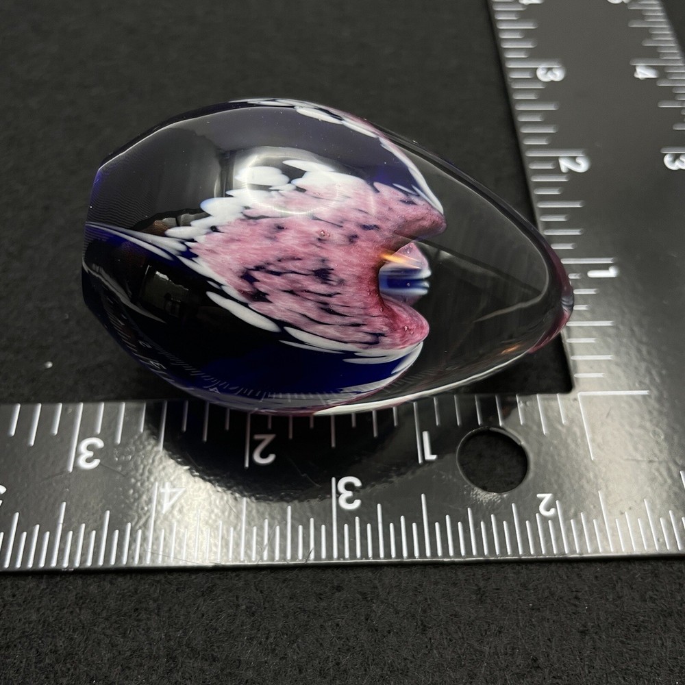 Glass Eye Studio Pink Blue White Swirl Egg Shaped Paperweight Signed , Dated- 1996?...