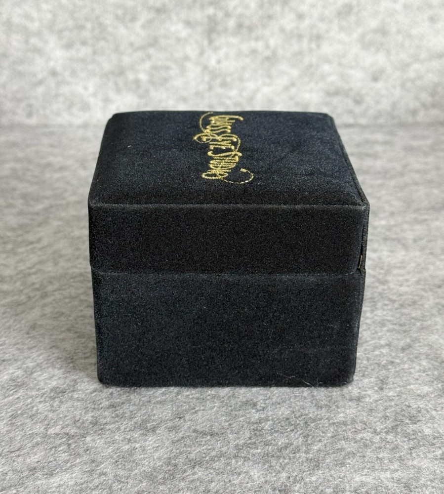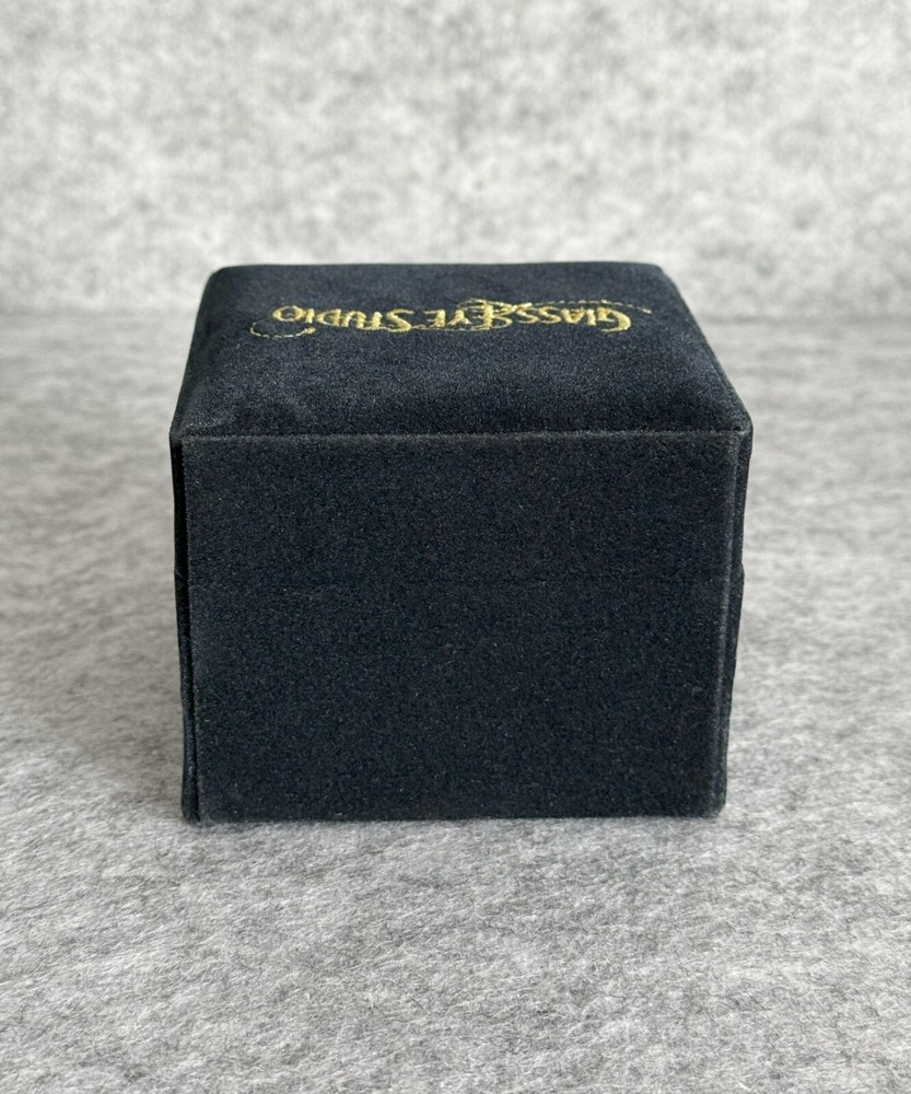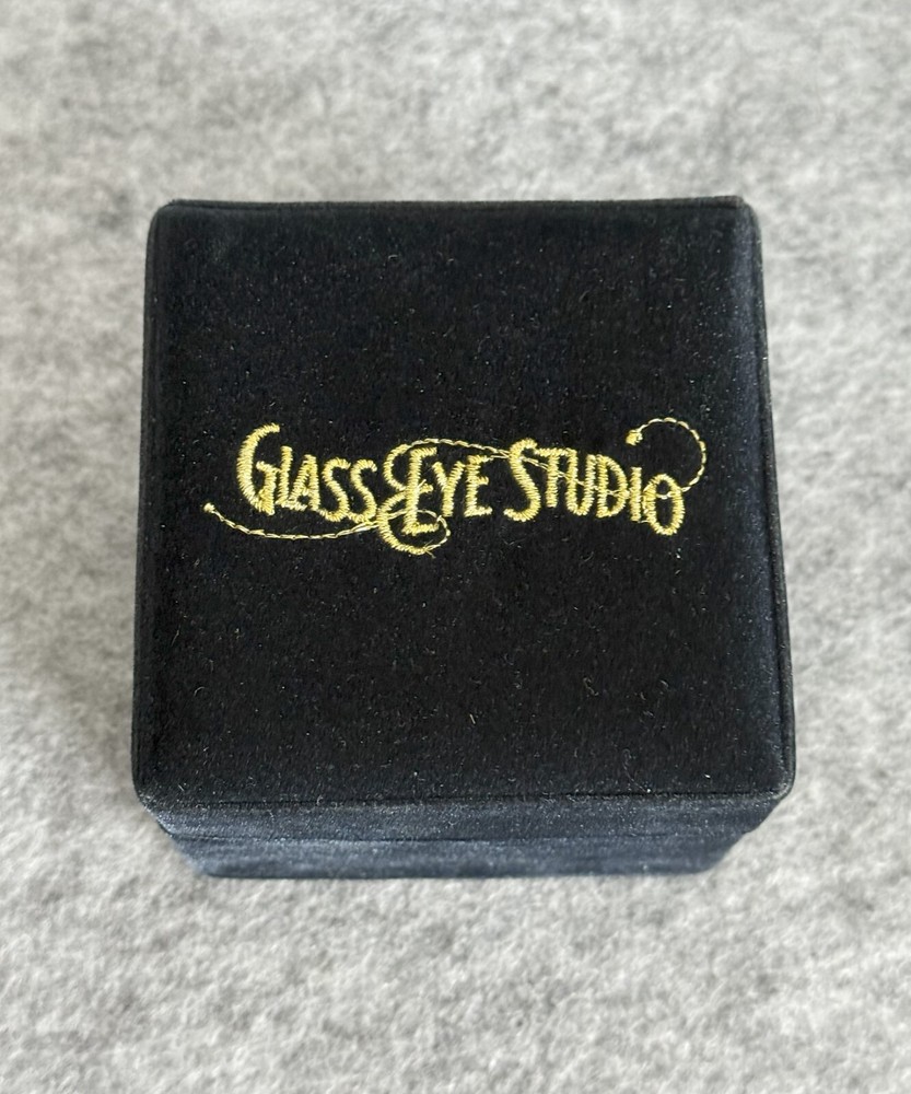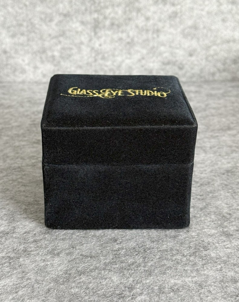 Glass Eye Studio Small Paperweight Padded Storage Container - BOX ONLY Blue velveteen with gold embroidery Measures 3.5" x 3.5" x 2.75" Outer top of box is padded as well as the inside of the box to securely protect your item. This is the box that your smaller Glass Eye Studio paperweight or ornament should be stored in. Keeps it safe and adds value to your paperweight or ornament if sold in the future. Smoke free, pet free home Thanks for looking!