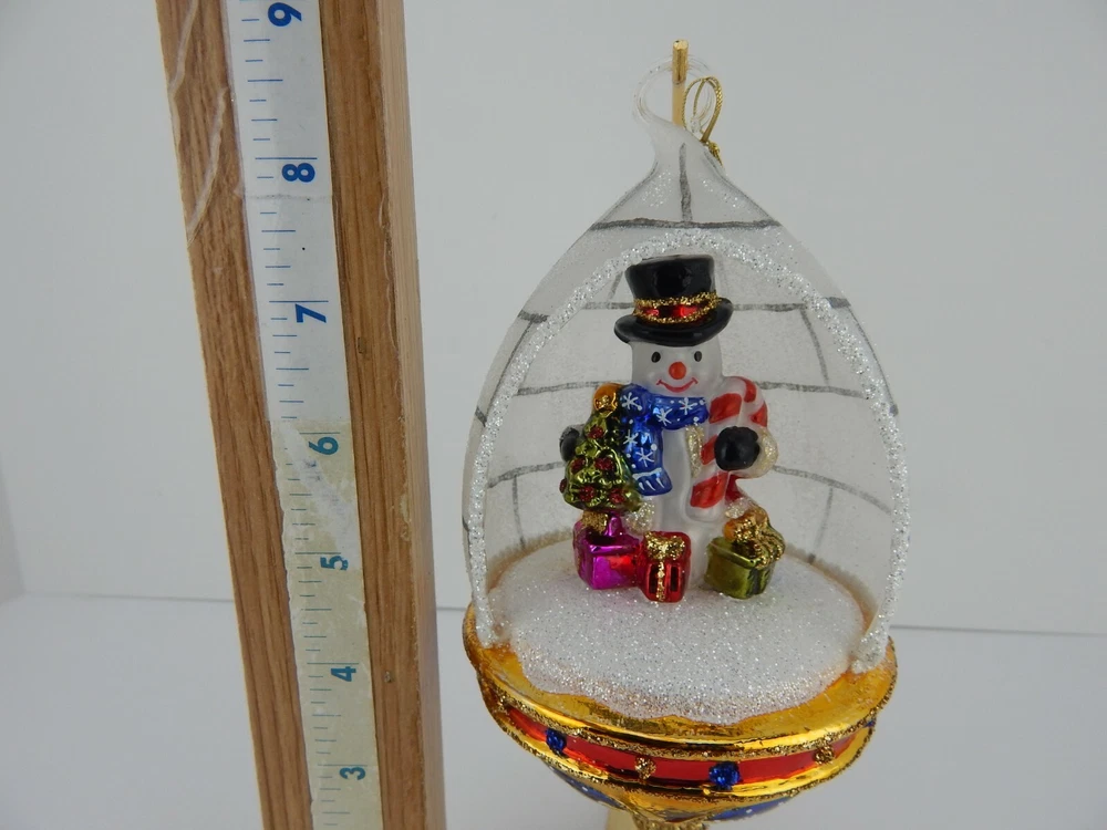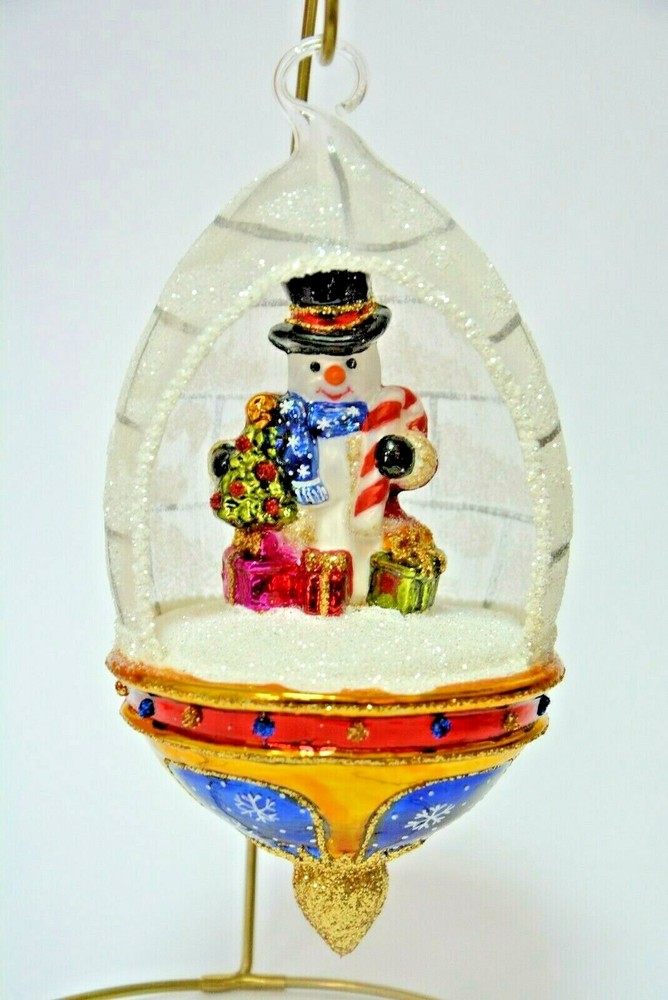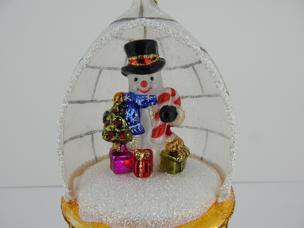 Glassware Art Studio Snowman Dome Glass Ornament New Note - Does not include Ornament Stand This is absolutely an Heirloom to hand down generation to generation! The attention to detail is amazing! This is a New Brand and Item for Us...We traveled to Europe and compared many different Companies that produce Hand Blown, Hand Painted Glass Ornaments. It was very apparent to us that the quality on these are far superior to many and even offer a better price point than the more popular companies! And now we are able to bring over 250+ of their designs straight from the Manufacturer in Poland to Us to You! No additional import costs or shipping to pay for! As they are Hand Blown, Hand Painted Glass Ornaments, slight differences can occasionally be seen in the same identical item number..for example stripes may be slightly wider on one piece vs. another that is slightly thinner. These differences are very, very minimal and generally only noticeable if you have two side by side Each is in a plain Gift Box with Original Manufacturer Packing (shredded white tissue). Each will be shipped in a corrugated outerbox filled with styrofoam peanuts and marked with Fragile Tape. Ornaments will be sent Fully Insured just in case This companies designs are Absolutely Stunning! Truly Exquisite! And obviously, much nicer when seeing them in person!