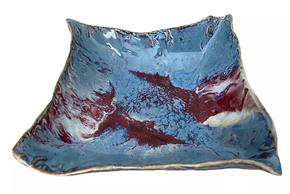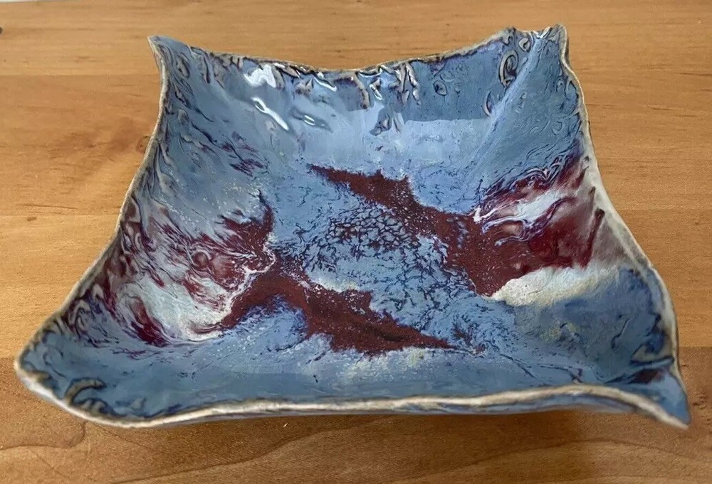 love for art while keeping your small treasures organized! The vibrant blue and scarlet glaze pops against the glossy finish, making it a standout decor piece. Handcrafted and signed by the artist, this dish feels special—perfect for holding jewelry, keys, or even as a stylish soap dish. The weight gives it a sturdy, quality feel, and the square shape fits seamlessly into any tabletop or shelf. Easy to clean and unexpectedly versatile, it’s a gorgeous functional art piece I’d recommend to anyone who appreciates unique ceramics!