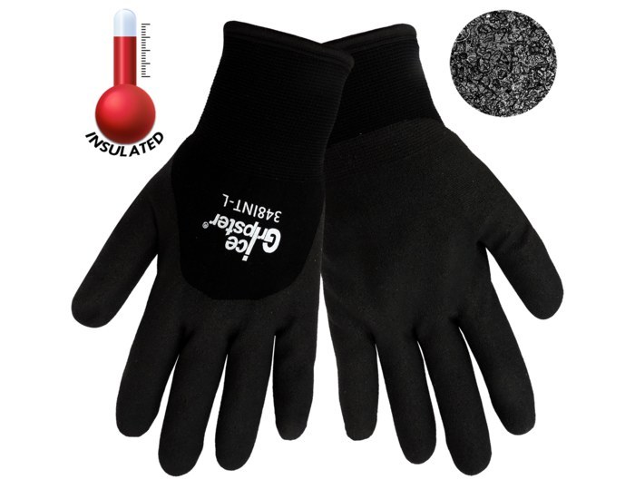 Ice Gripster® - Two layer shell featuring nylon over seamless brushed synthetic terrycloth, ¾ dipped with black foam PVC. Very warm glove perfect for cold weather!...