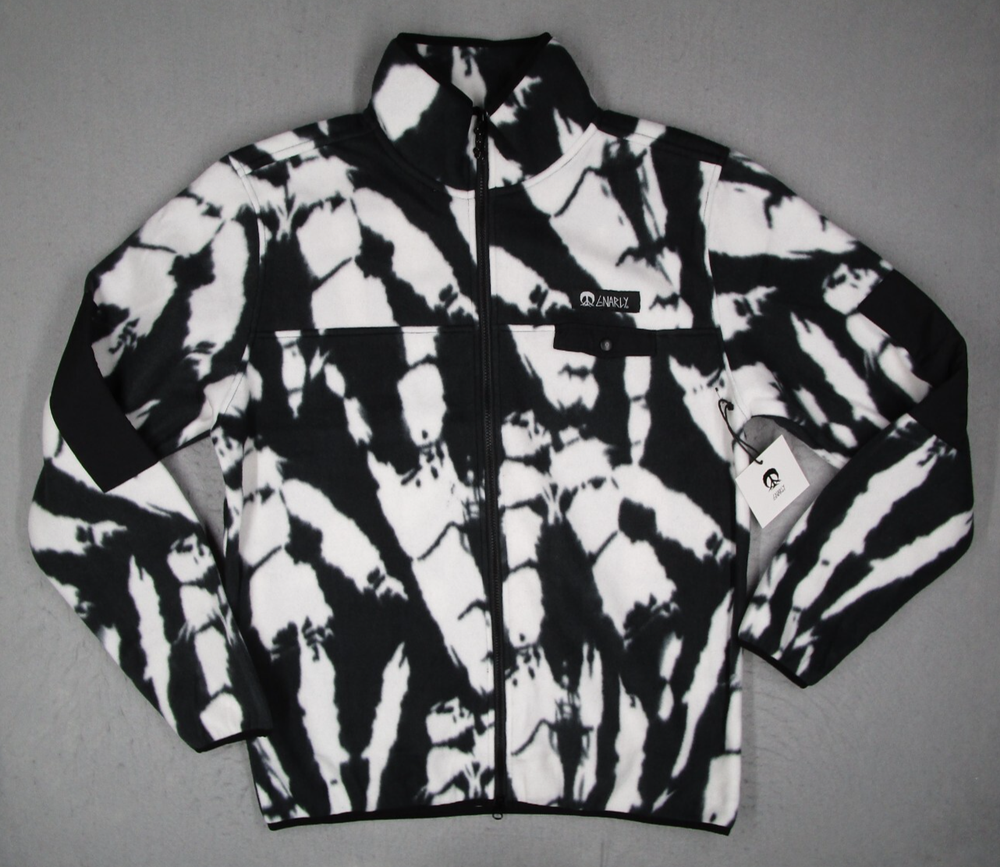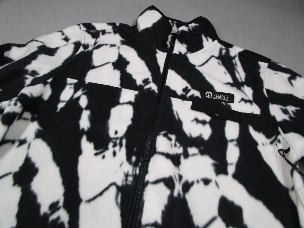 GNARLY Men's black + white full zip HAZE DIP FLEECE TIE DYE pullover - polyester Size: Men's XL Approximate measurements: see photos ** See photo of small spot ** Prepped, cleaned, packed, and stored in smoke / pet free environment Please message me with your questions - ask about discounted shipping w/ multiple purchases!
