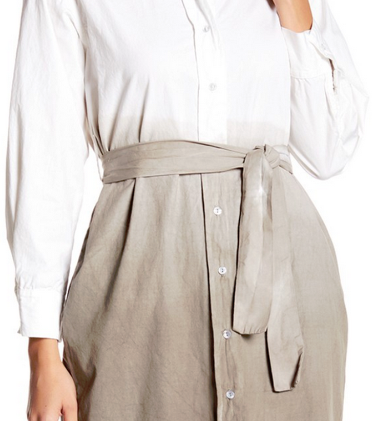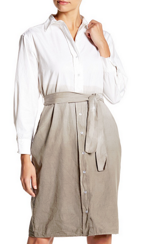 Go Couture GO Modest Dip Dye Shirt Dress NWT $178 Style 55302MORL-55 Size L Color MOCHA DIP DYE Details - Spread collar - Long sleeves - Button front closure - Ombre print styling - Seam detailing throughout - Lightweight construction - Approx. 39" length Fiber Content 47% polyester, 47% rayon, 6% spandex Care Dry clean only