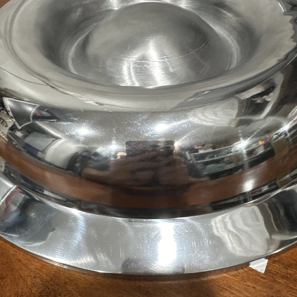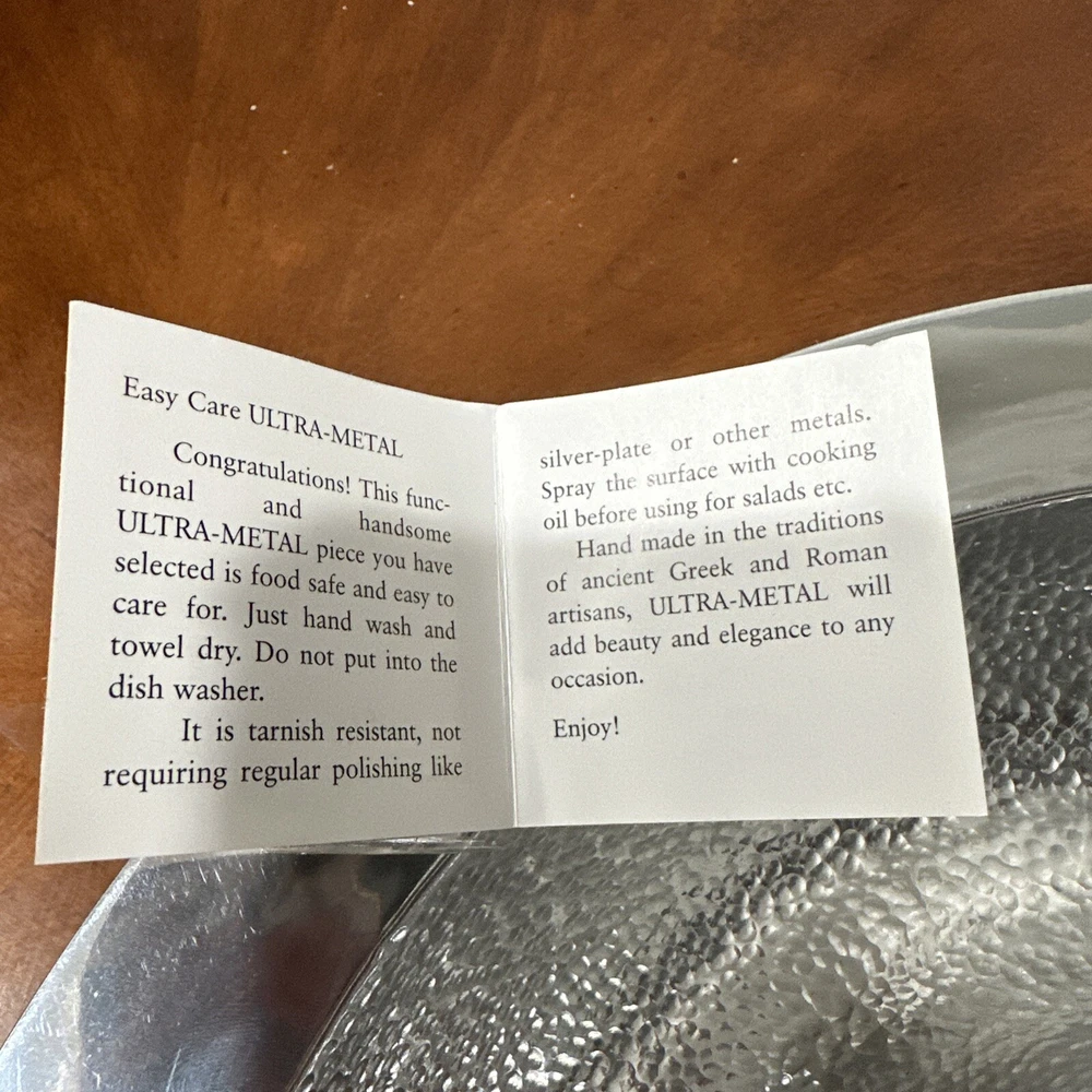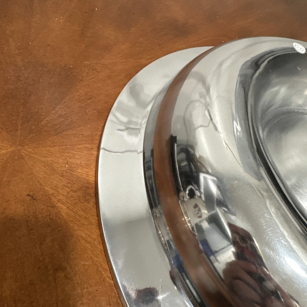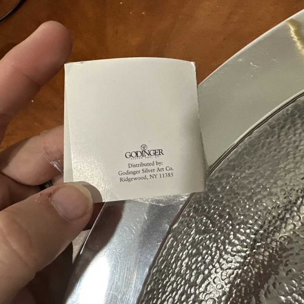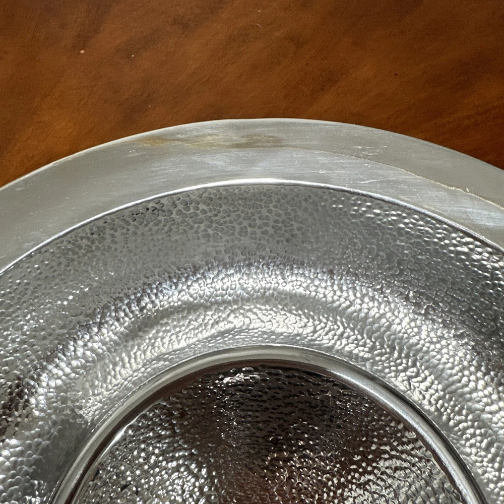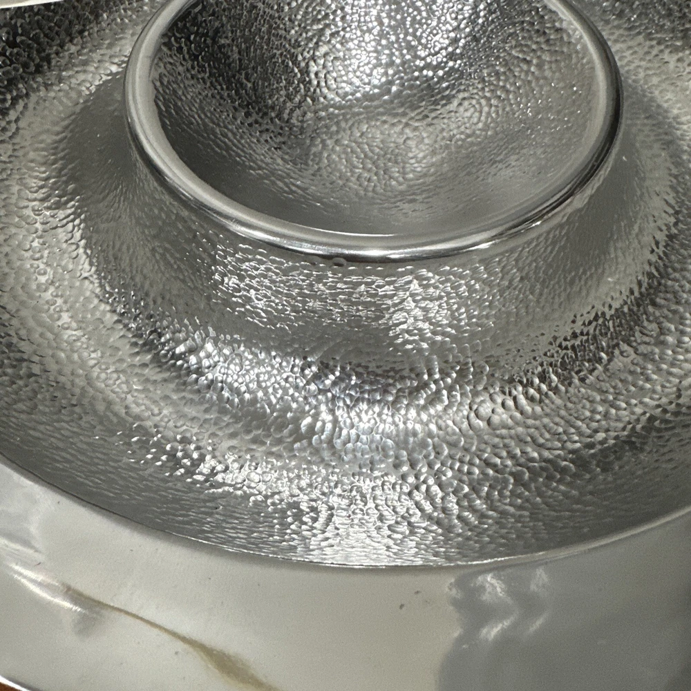 This Godinger Ultra-Metal Round 14" Hammered Chip and Dip Tray Serving Platter is a stunning addition to any kitchen or dining set. The large, round shape is perfect for serving chips, dips, and other small appetizers, while the hammered design adds a touch of elegance and sophistication. Crafted from high-quality ultra-metal, this tray is durable and built to last. The silver color is timeless and will complement any decor, making it a versatile piece for any occasion. Measuring 14 inches in both length and width, this chip and dip tray is perfect for serving up your favorite snacks in style. All of my listings benefit the National Down Syndrome Society. Thanks so much for your interest! It’s in stock and ready to ship, great for any collector. The item appears to be in good shape. May have sticker residue, foxing, boxing, warping, dents, dings, tears, etc., please refer to pictures before bidding or purchasing