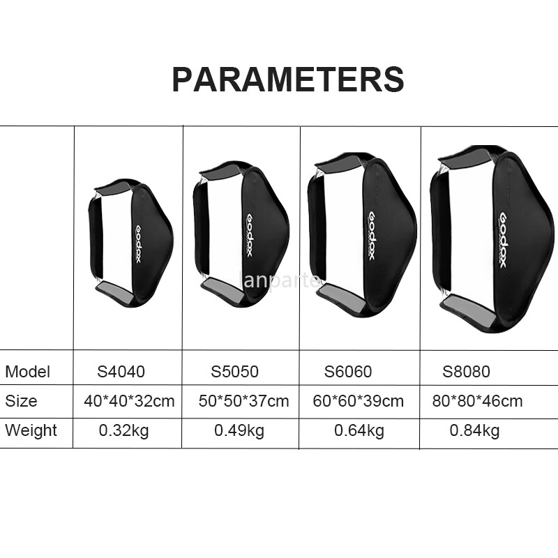 Godox Softbox S2 Bracket Foldable Softbox Bowens Mount Studio Camera Flash Light 40*40cm / 50*50cm / 60*60cm / 80*80cm Not include the flashlights. Description: Godox S-type Bowens speedlite bracket is superior: all-in-one, smaller size, portable design, no assembly/disassembly, and easy mounting system. Quickly add Bowens-mount lighting accessories to get creative lighting effects. Features: - No pre-assembly & post-disassembly. Smaller size, lighter weight, & less occupied space - Unique speedlite mounting way: mounted horizontally or vertically by wrapping speedlite body - Reliable mounting: not require Velcro, no pressure on hotshoe, no metal scratches on speedlites - Mount size is adjustable to fit all brands of speedlites and even Godox AD-360 - Bowens mount adds most studio flash accessories, e.g. softbox, reflector, beauty dish, etc. - Umbrella input hole is available and adjusting lighting direction with handle is supported. Specification: - Type: Quick-install softbox - Bracket: S2 type bracket - Bowens mount chuck - Structural design: Four-corner softbox - Use: Directly mounted on a Godox s-shaped bracket, suitable for almost all on-camera flashes on the market - Function: Even and soft light - Size: 80x80cm/31.5x31.5" ; 60x60cm/23.6x23.6"; 50x50cm/19.7x19.7"; 40x40cm/15.7x15.7" (Optional) Model S4040 S5050 S6060 S8080 Size 40*40*32cm 50*50*37cm 60*60*39cm 80*80*46cm Weight 0.32kg 0.49kg 0.64kg 0.84kg Soft diffuser Dual layer soft diffuser Suit for Speedlite flash light, Round light, Outdoor flash light, Studio light 1. Your valid phone number is very necessary for the shipping, otherwise we can't guarantee that the package would safely arrives. 2. Any Customs tax applied to this package should be covered by buyers. 3. As has been stated on the eBay item description, Import duties, taxes and charges are not included in the item price and shipping charges. These charges be at the buyer responsibility. meanwhile the customs tax depend on the buyer local customs office. What in Package: - 1 x Foldable Softbox - 1 x Godox S2-Type Bracket - 1 x Outer Soft Diffuser - 1 x Inner Soft Diffuser - 1 x Carring Bag Contact Us: 1. We have always been trying to provide the best service and reliable products for every customer, however, accident may happen sometimes, please contact us to resolve any issue before leaving a negative feedback. 2. Please contact us by "Ask a question". Payment 1. Payment methods accepted : Paypal only. 2. Payment must be received within 7 business days of auction closing. Shipping 1. We ship your orders within 1-3 business days after the payment received. 2. Item shipped via Singapore Post or HongKong Post , It takes about 7-30 business days (USA,CA,AU,UK).others country 10-20 business days(Brzil,India,RU),Exact delivery time depends on postal process. 3. If you do not receive your item(s) by 30 business days,Please feel free to contact us via ebay mail system , we will try our very best to resolve any problems with you Return Policy 1. Return is accepted within 30 days after the buyer's receiving the item. 2. If this item is defective upon receipt, customer has up to 14 days from date of receipt for exchange of a new one. 3. Unused/unopened merchandise will be fully credited. Other Policies We are not responsible for any custom duty or import tax. If you need we write low price on shipping bill, pls leave message when you make payment . All emails will be answered within 24 hours. If you do not receive our reply, please kindly re-sent your email and we will reply to you as soon as possible, Suggest send eBay message to us, That is easy to find .