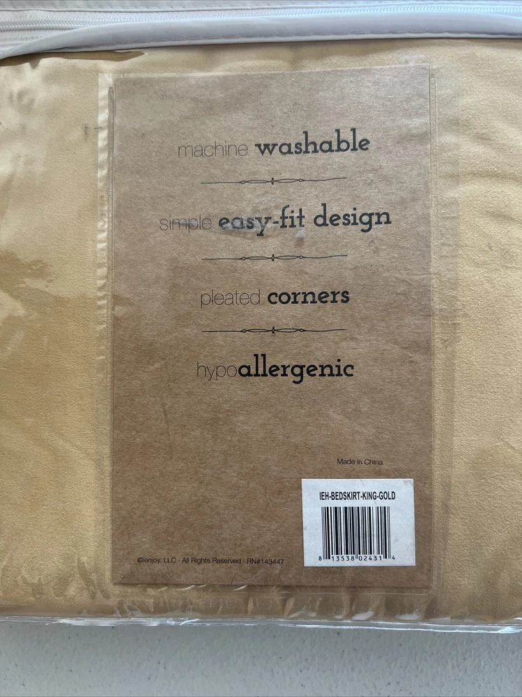 Gold Premium Bed Skirt King Size Microfiber. 14" Drop Skirts. Machine Washable. Simple easy fit design. Pleated corners. Hypoallergenic. New item, no tears, no stains, no rips....