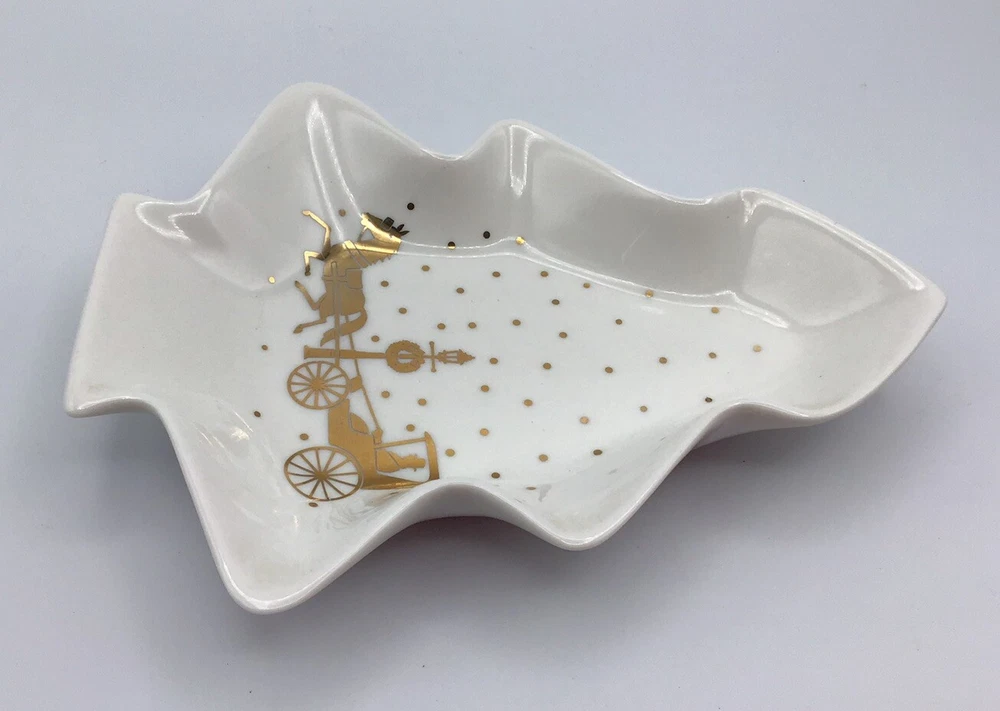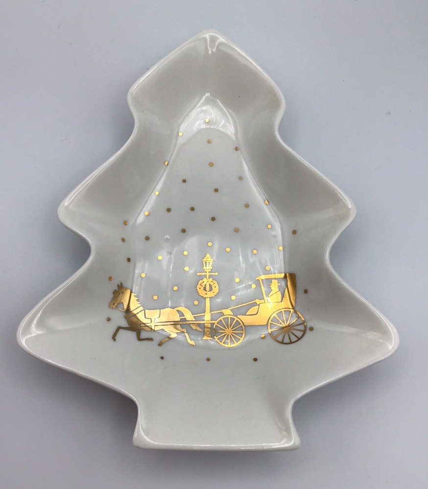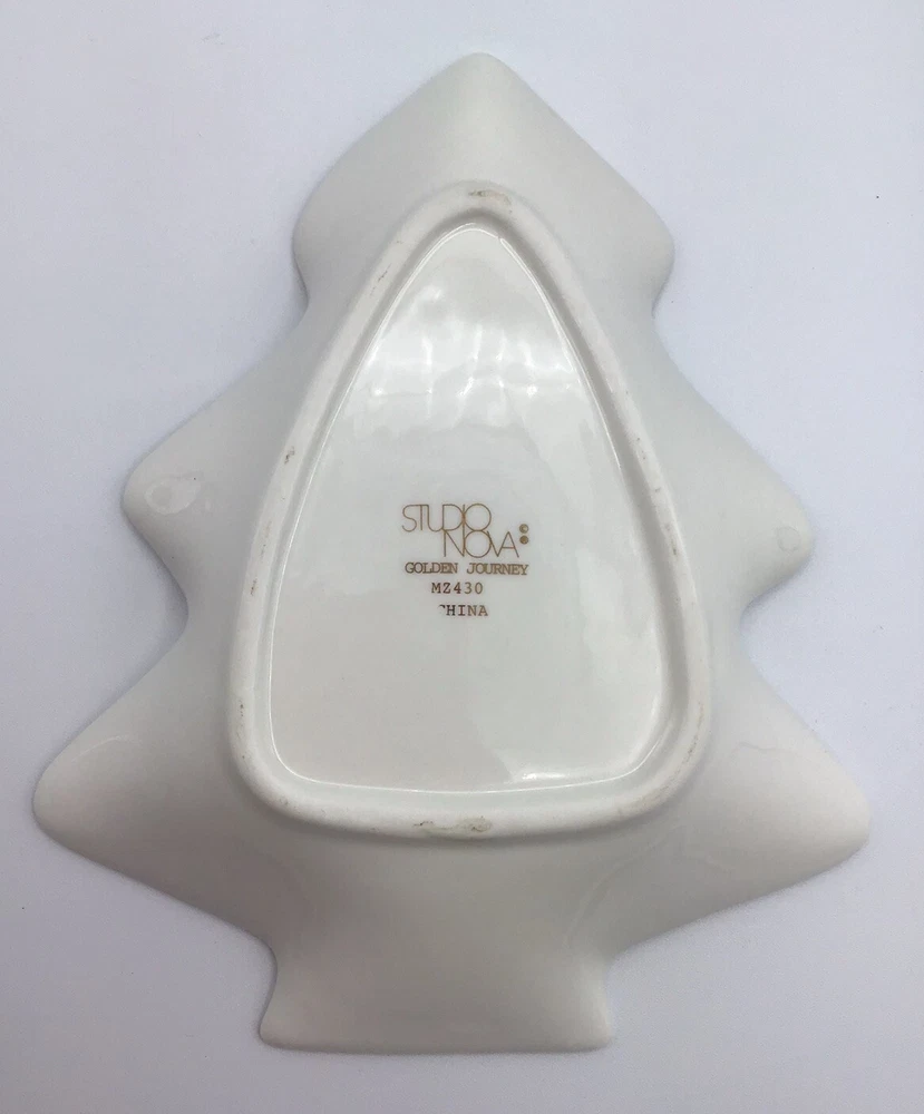 Studio Nova - Golden Journey - Tree-Shaped Candy Dish - Trinket Tray. White with gold Dish is 7.5” from tip of tree to base. It is 6” across at widest part and 1” deep It is pre-owned and in very good condition with no chips or cracks Shipping via USPS Ground Advantage