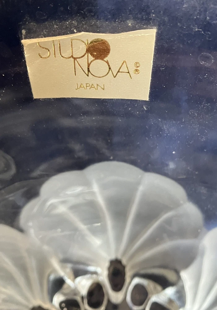 This Studio Nova crystal tulip bowl is absolutely stunning! The craftsmanship is impeccable, and the clear, resonant "ping" when tapped proves its quality. No chips or scratches—just pure vintage elegance. At nearly 10 inches wide, it makes a gorgeous centerpiece or display piece. The delicate tulip shape and sparkling clarity add a touch of timeless beauty to any space. A true treasure!