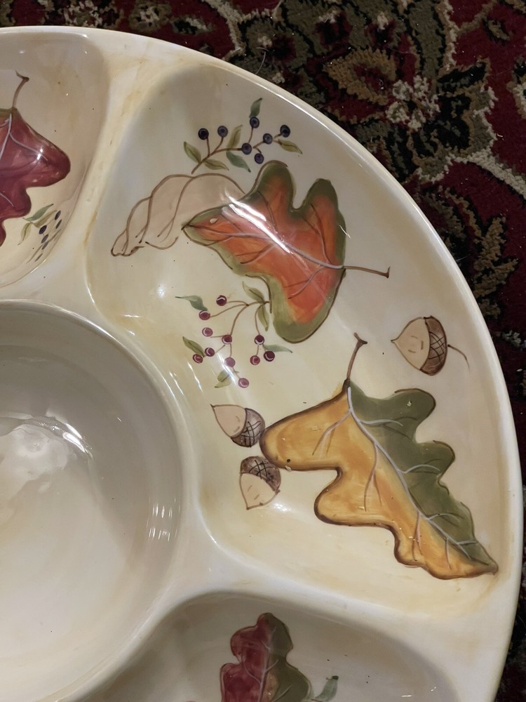Gorgeous Zrike Hand Painted “Harvest Leaves” Four Section Dip 15” Tray. EUC...