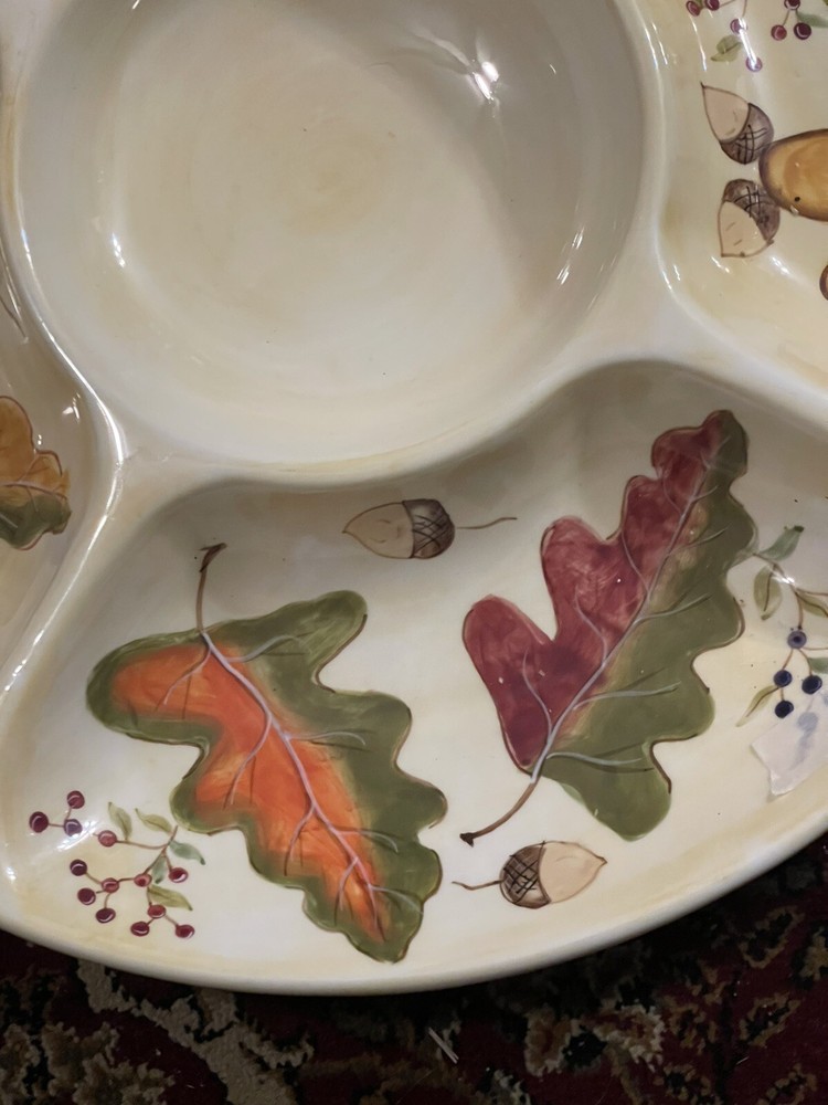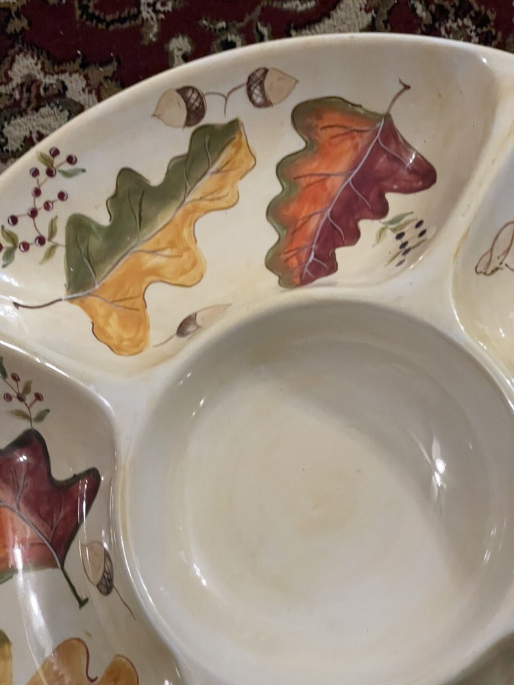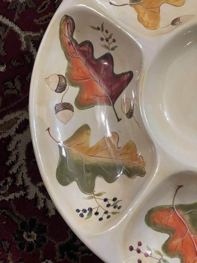 Gorgeous Zrike Hand Painted “Harvest Leaves” Four Section Dip 15” Tray. EUC