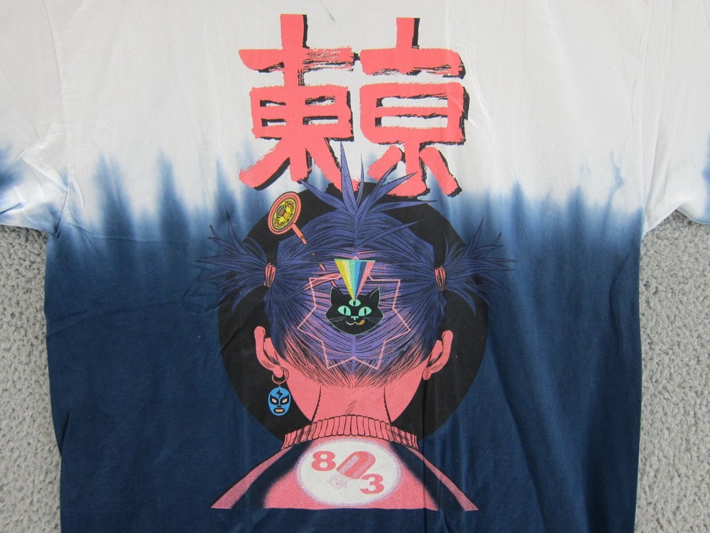 Gorillaz T-Shirt Mens XL Noodle Tie Dip Dye White Blue Y2K Japanese. This item has been cleaned in accordance with eBay's used clothing policy. Shirt is in good pre-owned condition. Shirt is clean and free of any markings, rips or tears. Shirt Dimensions: Armpit to Armpit - 22 Inches Shoulder to Hem - 31 Inches