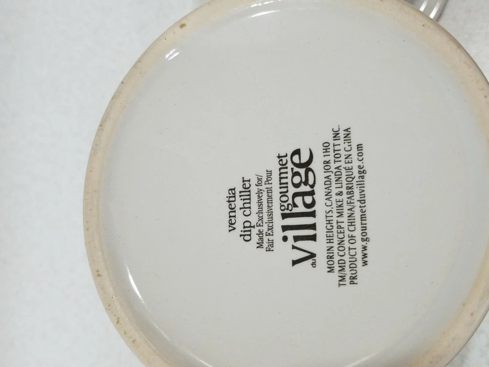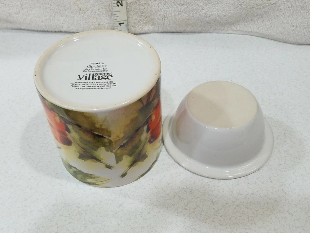 Gourmet Village Dip Chiller Venetia 2 Pc Ceramic Set Large Bright Veg Motif. Condition is gently Pre-owned. Please see photos for more details. Non smoking home. Shipped with USPS Priority Mail. We take extra care in shipping fragile items to you. Thanks for shopping. Check out our other items for sale to benefit charity. Bx12