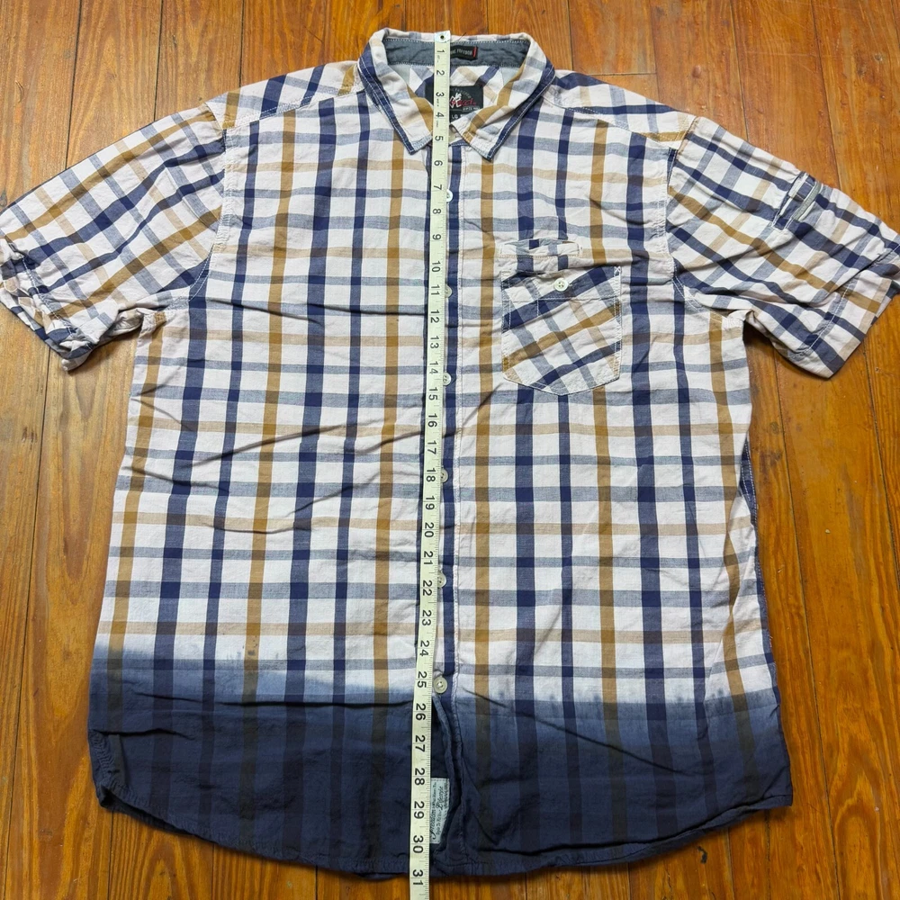 Absolutely love this Gramricci shirt—super comfortable, unique dip-dye design, and the fit is perfect. Lightweight but durable, great for layering or wearing solo. The plaid adds a cool vintage vibe, and even with some wear, it still looks sharp. The seller Bros. 30-day return policy is a nice bonus. Highly recommend!
