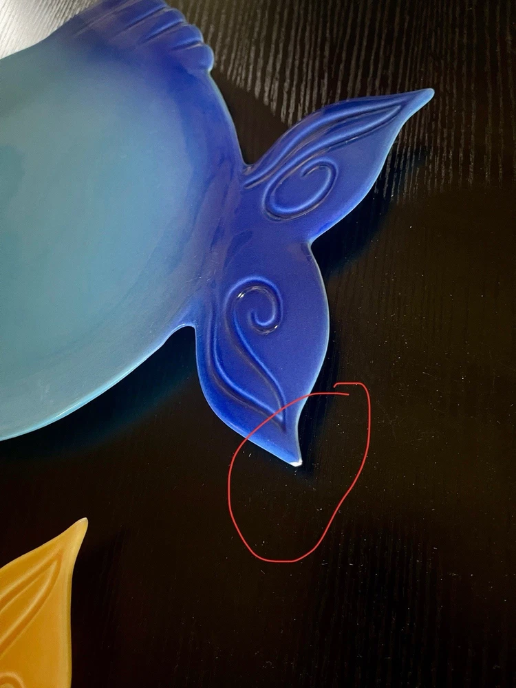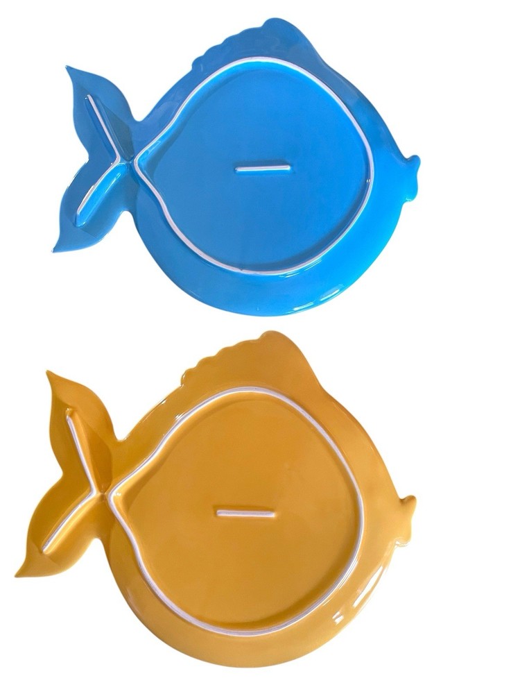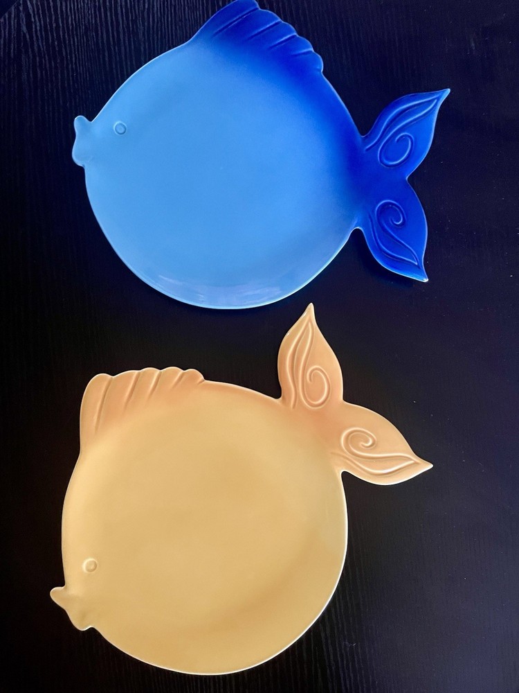 Grasslands Road Studio 100 Making Waves 11-inch - LOT OF TWO Fish Shaped Plates These beautiful collectible decorative plates are in brand new condition despite the small chip on the blue fishes tail- probably due to being stored. Please see all photos for details as well as to ensure your happiness before purchasing. :) These gorgeous plates are rare and very HTF. 🌸Thanks for reading🌸 ⭐ JK CUSTOMS (We started selling in 2023 beginning with our handmade products.) 🧐 Make sure to read our reviews! We have made over 10,000+ sales in all of our stores combined! ☕ FYI- WE MAKE CUSTOM TUMBLERS! (message us for more details) 🛍️ Normalize Second Hand & Shopping Small! Stop by our store for an eclectic mix of funky retro finds, collectible treasures, clothing, accessories & more. 📫 We ship same or next day! ( INCLUDING Saturdays. ) 📦 WE REUSE BOXES!!! We can help save our planet one reusable box at a time! 🧡 We love our customers! Look out for freebies! We also send out offers & coupons!
