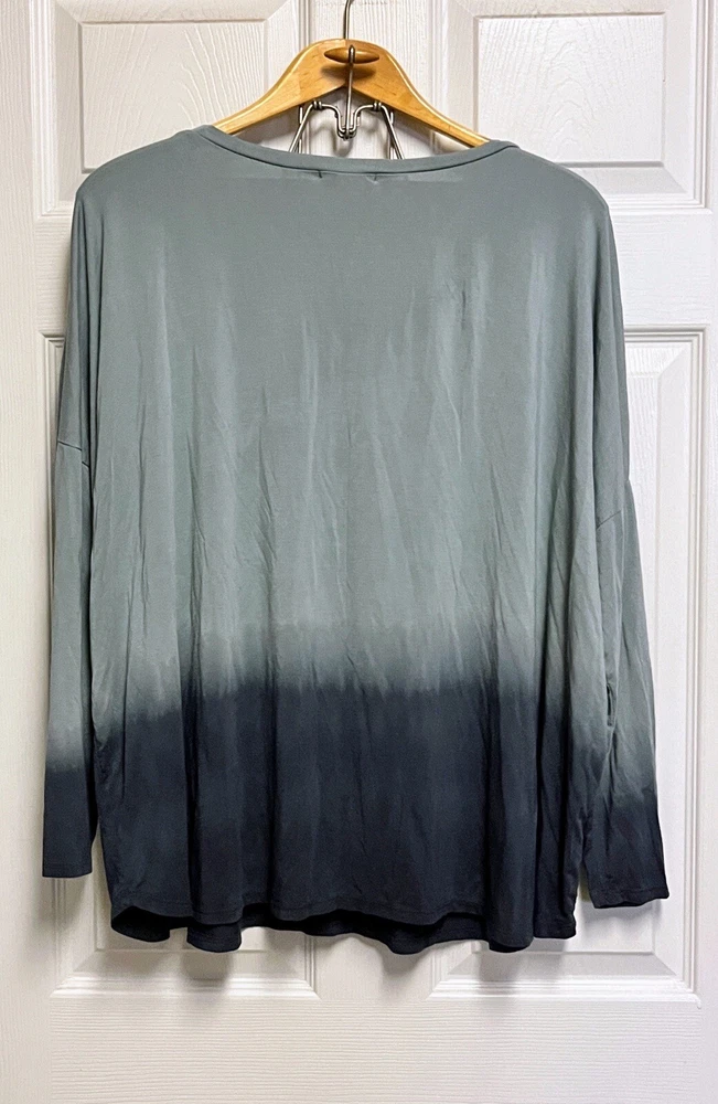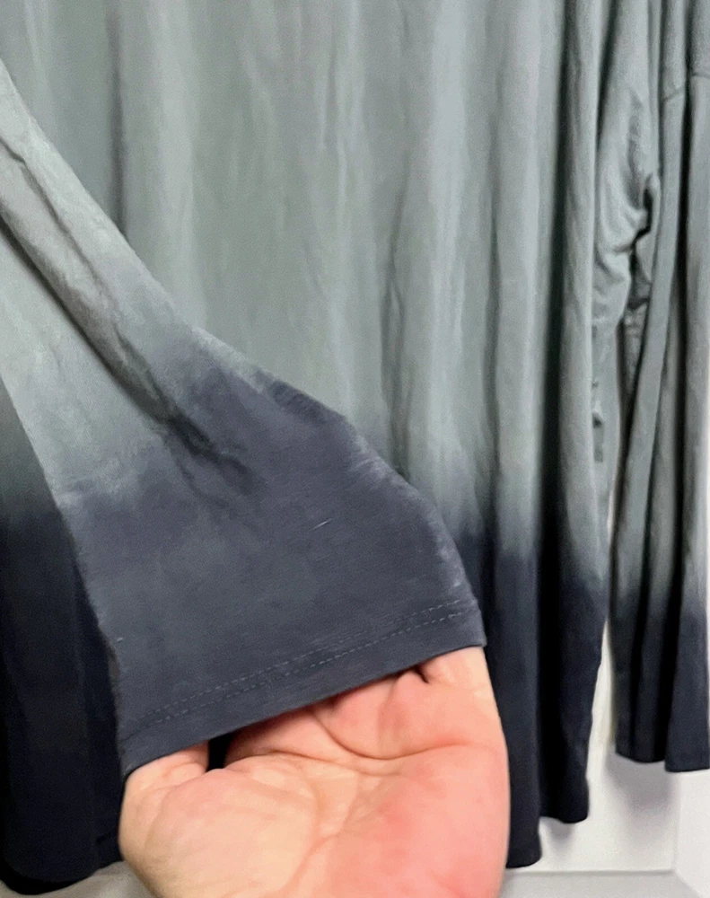 Excellent preowned condition. Tagged as large but check measurements for fit. Returns are unavailable. This cozy dip dye 3/4 sleeve tunic has a scoop neck, dropped shoulders (making it long sleeve) and gently curved hem. Loose, Laganlook, oversized fit. 95% rayon/5% spandex Bust 66” Length 27” Sleeves 16”