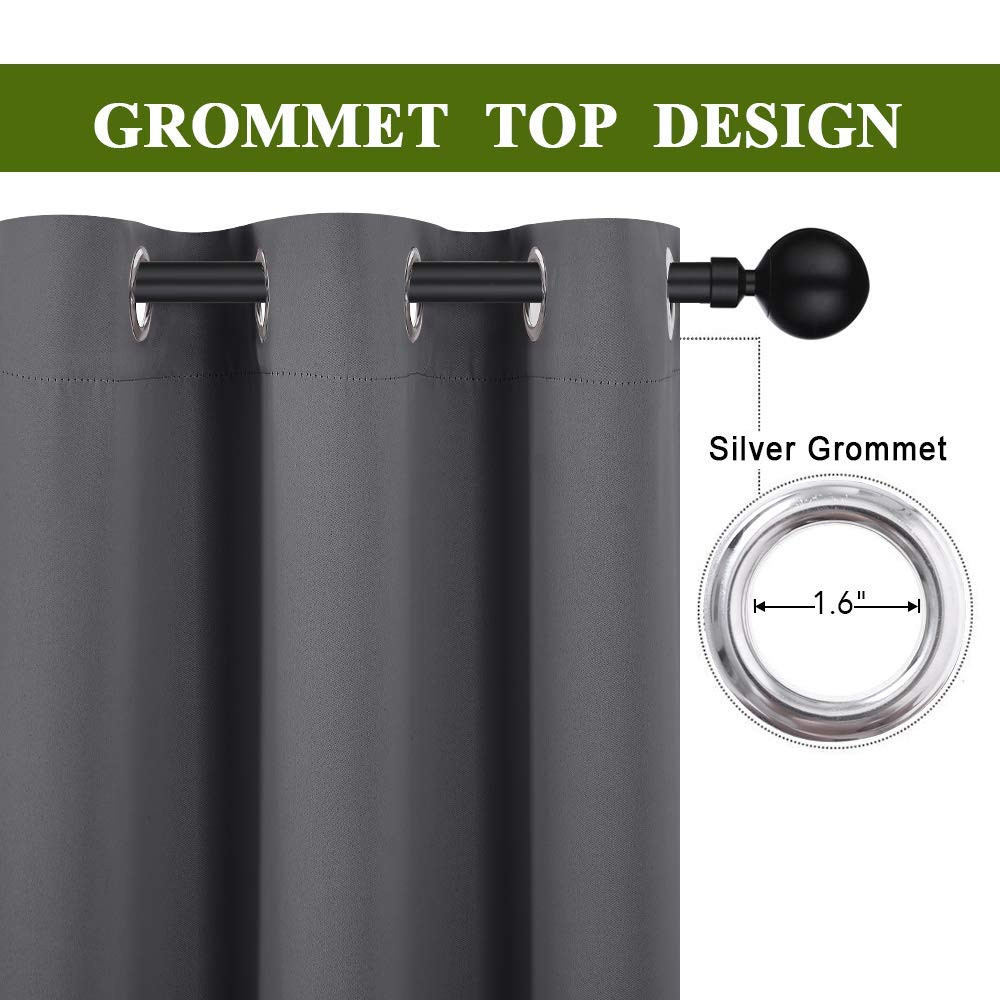 ELEGANT DESIGN: A panel BLACKOUT CURTAIN per package. Each Curtain Panel measures 42" wide x 84" long. The drapery is constructed with gorgeous matte silver grommets, fitting the curtain rod of your choice up to 1.6 inches in diameter, making the curtains easy to install and slide. NICE MATERIAL: This smooth, soft and heavy-duty blackout fabric is woven with three-layer construction. The middle layer of black yarns creates a curtain panel that is excellent for blocking out 85%-99% of light (Dark color works better on blocking light) while adding a pop of color to your room. MULTIFUNCTION: This Blackout Window Curtain will prevent harmful UV rays from reaching your floors and furniture, efficiently prevents cold or heat transfer from outside, will increase the energy efficiency of your home, and allow you to create darkness at any time of day. GOOD CHOICE: Perfect drapery option for anyone seeking to block daylight, take a nap, or keep sun glare off your TV. Besides, you can choose blackout valance and sheer curtains in the to match. Such curtain sets provide a more permanent harmonious window dressing. EASY MAINTENANCE: Good quality finishing will withstand years of use. Machine washable and Wash the water temperature below 86F. Mild detergent no bleaching. Low-temperature ironing. Measure your pole and window size before you choosing curtains.