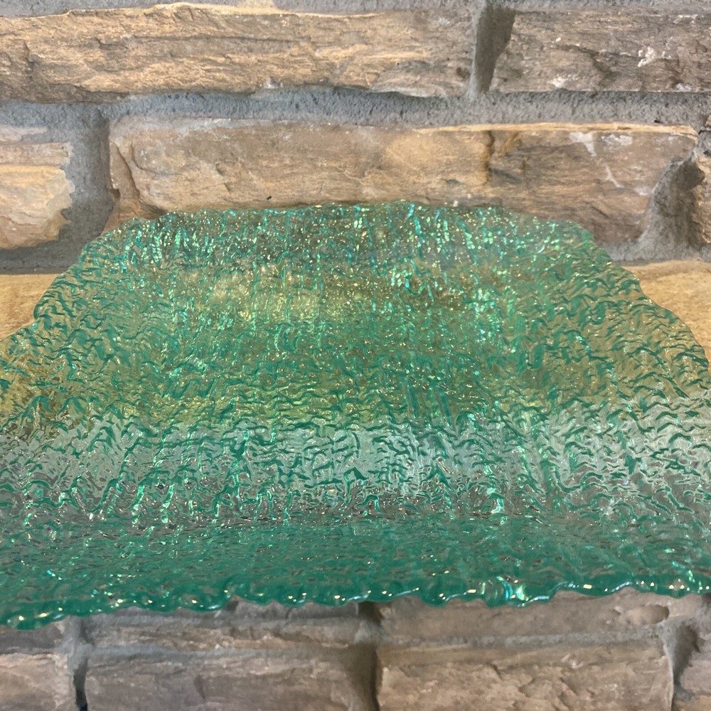 Iridescent Studio Art Glass Square Plate Dish Tray 11”....