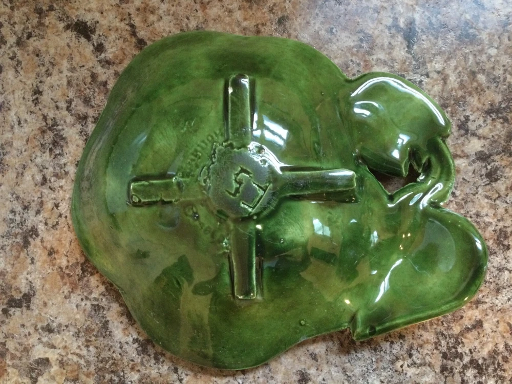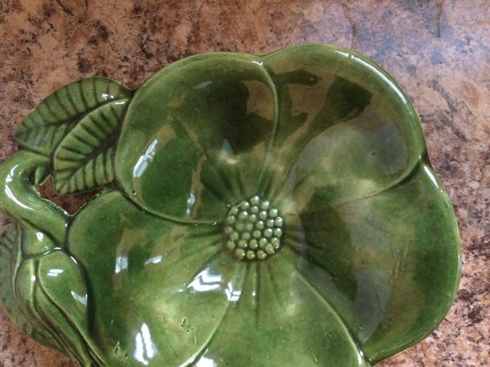 It is a very nice sunflower shaped bowl plate handled very decorative. Size: 17.2cm long, 15.3cm wide, 5cm tall Condition: pre-owned, very good, please check the pictures.