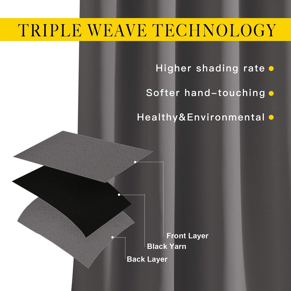Blackout Curtains are so much more than just bits and pieces of fabric that are sewn together to prevent sunlight from entering your home, they go beyond that mundane function and provide additional benefits that do not meet the eye instantly. Light Blocking Energy Savers. Having the heavy, multi-layered microfiber blackout window curtains or drapes can make a world of a difference in reducing the amount of light that comes in from outside, which has green-conscious consumers excited about investing them as energy-efficient window treatments. A home insulated and remains warmer in wintertime relieves the strain on home heating and reduces 25 percent energy budget at most. Sleep Soother n Noise Buffer. It's hard to get babies to take a rest during the day when the sun is streaming brightly through a bedroom window. Blackout curtains encourage the best possible sleep and most comfortable setting for day sleepers and the ones who have trouble falling asleep, by automatically darkening and lowering noise levels. Absolute Privacy n Relax. Not only that but also make your resting zone truly blissful. They would be perfect for any home theater and supply you with the enjoyment of watching TV in real darkness. If you are looking for great and cost-effective ways of re-inventing the look of your home, readymade curtains would be the game changer in your shopping cart. They are crafted for the topmost and luxury, coming with the strong grommet ring top for easy installation and smooth sliding over a rod. Each curtain panel is carefully ironed and ready to serve as your window dressing. What color do you like? Elegant Design: 2 panels per package. Each Blackout Curtain measures 52" wide x 90" long. The design of silver grommet (1.6-inch inner diameter) creates casual elegance for your house, which makes the curtains easy to install and slide. Amazing Material: Super heavy and soft Blackout Curtain Panels are very upmarket. Besides, 85%-99% light blocking, thermal insulated, soundproof, and energy-efficient. Thread trimmed and wrinkle-free, both sides are the same color. Good Performance: Protect your furniture and floor exposed to the sun, while still helping you on heating and cooling your home. Privacy protection. The greatest benefit is to bring you a good night's sleep, making you full of energy every day. Wide Compatibility: Don't bother looking for sheer curtains to match, choosing different styles of voile curtains with white color in the . Such curtain sets provide a more permanent harmonious window dressing, making your home lively. Easy Care: Good quality finishing will withstand years of use. Machine washable and Wash the water temperature below 86℉. Mild detergent no bleaching. Low-temperature ironing. Don’t use sharp things scratching curtains.