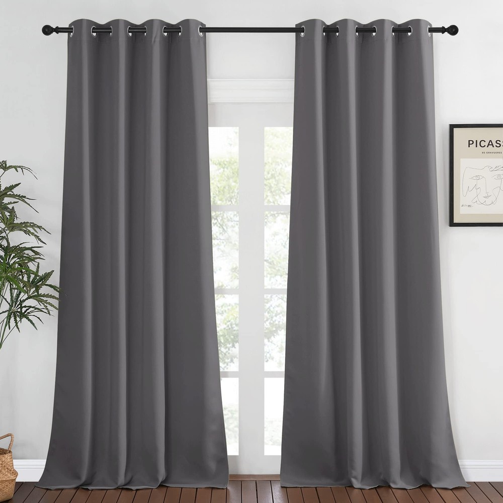ELEGANT DESIGN: 1-panel BLACKOUT CURTAIN per package. Each Curtain Panel measures 52" wide x 108" long. The drapery is constructed with gorgeous matte silver grommets, fitting the curtain rod of your choice up to 1.6 inches in diameter, making the curtains easy to install and slide. AMAZING MATERIAL: This unique, soft, and heavy-duty blackout fabric is woven with three-layer construction. The middle layer of black yarns creates a curtain panel that is excellent for blocking out 85%-99% of light (Dark color works better on blocking light) while providing privacy. MULTIFUNCTION: These Blackout Window Curtain Blind will prevent harmful light from reaching your floors and furniture, efficiently prevents cold or heat transfer from outside, will increase the energy efficiency of your home, and allow you to create darkness at any time of day. GOOD CHOICE: Perfect drapery option for anyone seeking to block daylight, take a nap, or keep sun glare off your TV. Besides, you can choose blackout valance and sheer curtains in the to match. Such curtain sets provide a more permanent harmonious window dressing. EASY CARE: Good-quality finishing will withstand years of use. Machine washable and Wash the water temperature below 86F. Mild detergent no bleaching. Low-temperature ironing. Don’t use sharp things scratching curtains.
