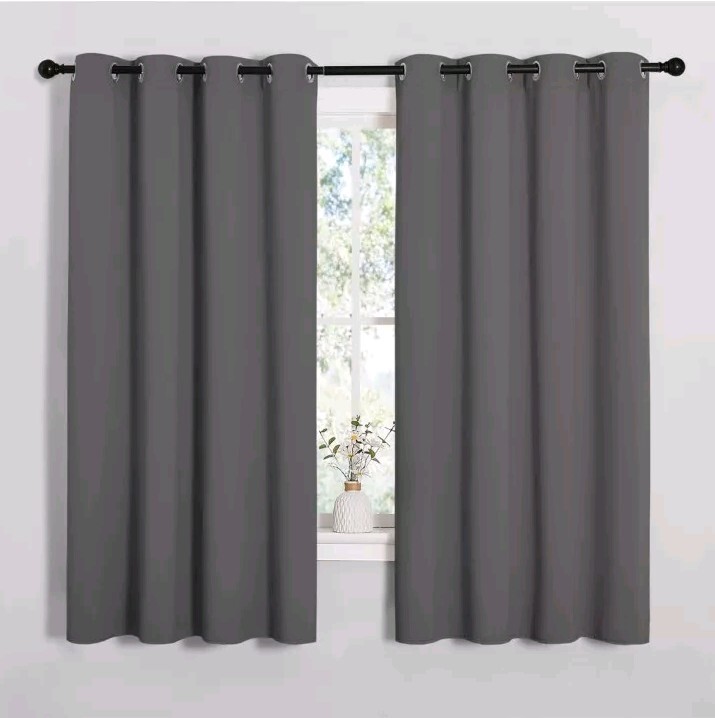 Polyester ELEGANT DESIGN: 2 panels per package. Each Blackout Curtain measures 55" wide x 68" long. The design of silver grommet (1.6-inch inner diameter) creates casual elegance for your house, which makes the curtains easy to install and slide. SERVE WELL: Curtains impede 85%-99% light and UV rays(Dark color curtains work well). Noise-reducing, better TV viewing thanks to the innovative triple weave technology. Thread trimmed and wrinkle-free, both sides are the same color. ENERGY SMART: Triple weave blackout fabric balances room temperature by insulating against summer heat and winter chill. Protect your furniture, floors, and artwork from the ravages of the sun, the drapes will pay for themselves off over time. WIDE COMPATIBILITY: Don't bother looking for valance to match, choosing different styles of blackout valance with the same color in the NICETOWN store. Such curtain sets provide a more permanent harmonious window dressing. EASY MAINTENANCE: Machine or hand washable. Mild detergent no bleaching. Low-temperature ironing. Measure your pole and window size before you choosing curtains.