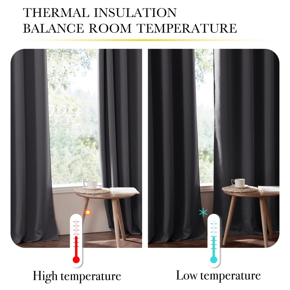 These curtains are fantastic! They block out light completely, making my room pitch-black for better sleep. The thermal lining keeps the temperature steady, and the grommets make them super easy to hang and slide. The fabric feels high-quality, and the double-layered design adds a nice, elegant touch. Exactly as described—great value for the price!