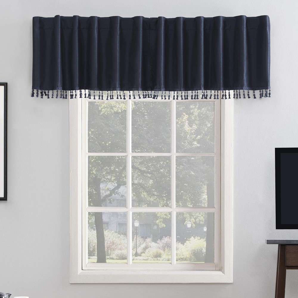 Elegant faux dupioni silk valance with a raw slub texture imparts opulent radiance Tassels with ornate beaded detail add a touch of glamour Blocks out 100% of outside light where window is covered Coodinate with the matching curtains(sold separately) on a double rod, or use as a standalone valance Back tabs fit curtain rods up to 1. 5" in diameter Valances sold individually (image features 2) Item Package Dimension: 10.91L x 5.98W x 1.73H inches Item Package Weight - 0.65 Pounds Item Package Quantity - 1 Product Type - CURTAIN