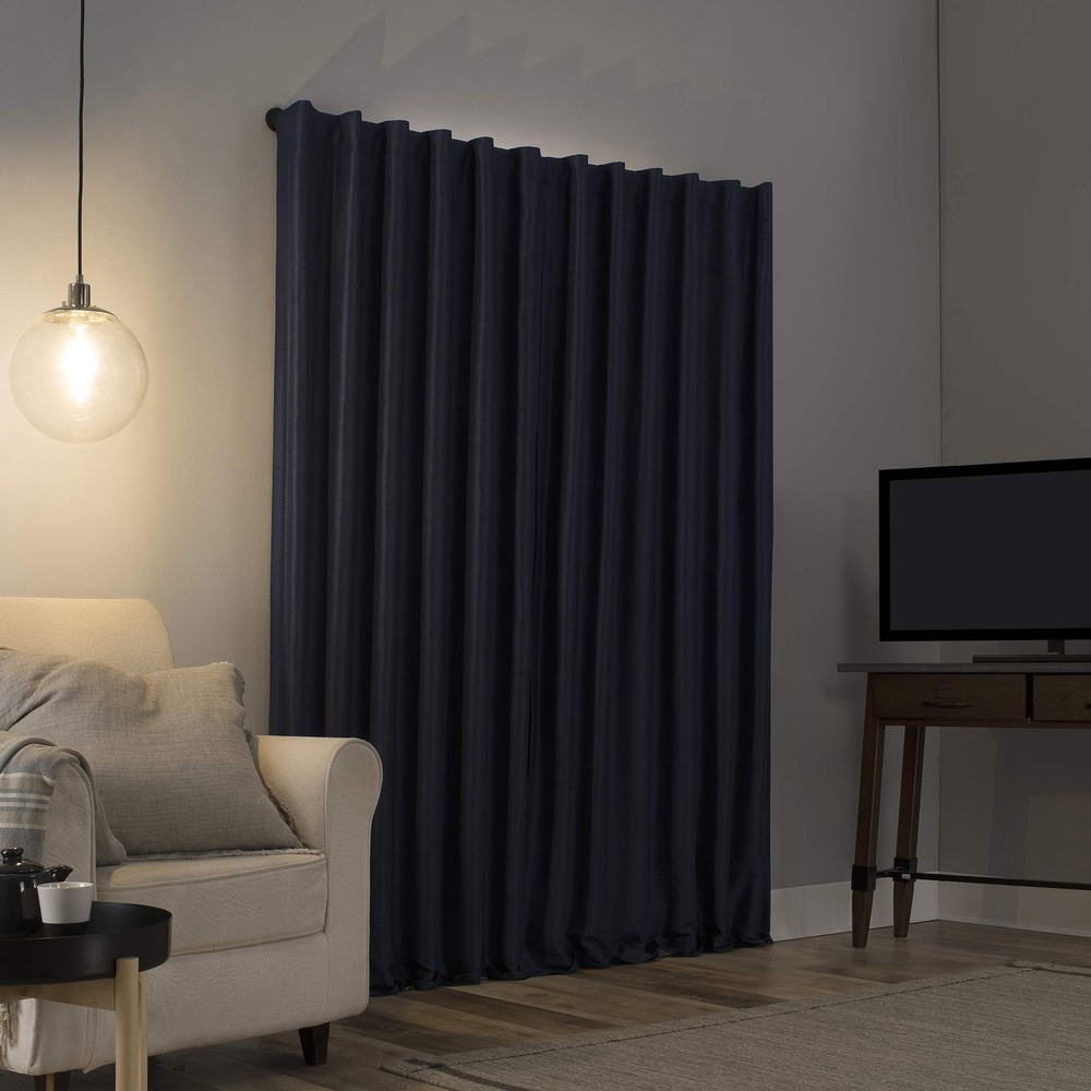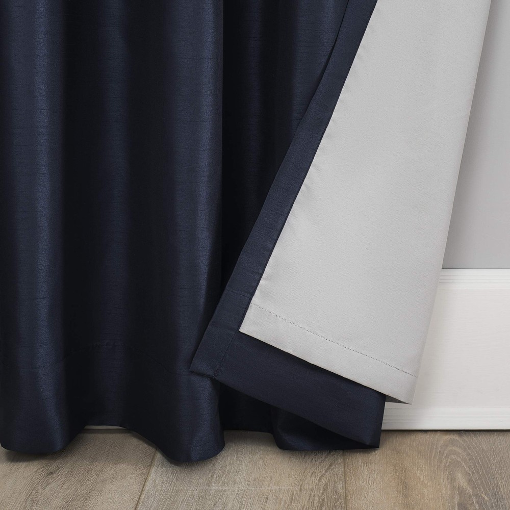Elegant faux dupioni silk fabric with a raw slub texture imparts opulent radiance Extreme Blackout Thermal Lining blocks out 100% of outside light Energy Efficient design reduces energy lost through your windows by up to 40% Thermal properties help keep summer heat and winter chill out of your home Noise reduction by up to 30% helps you get a sounder, more uninterrupted sleep Back tabs fit curtain rods up to 1. 5" in diameter Item Package Dimension: 10.31L x 8.15W x 2.24H inches Item Package Weight - 1.77 Pounds Item Package Quantity - 1 Product Type - CURTAIN