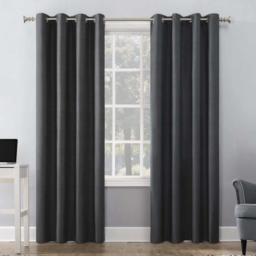 Store New Arrivals Add to Favorite View Feedback Contact Grommet Blackout Curtain Panel Light Blocking Thermal insulation 50.0" X 84.0" Description Country of Origin - Textiles Imported Material Polyester Size 50 x 84 Curtain Panel Style Grommet Brand Sun Zero Manufacturer Part Number 55905 Color Charcoal Assembled Product Dimensions (L x W x H) 84.00 x 50.00 x 0.25 Inches Total Blackout technology blocks out 100% of outside light while enhancing privacy Thermal insulation helps keep summer heat and winter chill out of your home Energy efficient design reduces energy lost through your windows by up to 35% Noise reduction up to 35% helps you get a sounder, more uninterrupted sleep Built-in metal grommets fit curtain rods up to 1.5" in diameter Each panel sold separately. (Image features 2 panels) Curtain rod not included. Double rod may be needed for layering. Sun Zero Duran Curtain Panel in charcoals provide the ultimate in light blocking technology to keep out even the harshest of light while bringing a subtle texture to any room of your home. Sun Zero Total Blackout technology is laboratory tested to block out 100% of light, reduce outside noise by up to 35%, and decrease energy lost through your windows by up to 35%. Comfort is optimized with thermal insulation that helps keep summer heat and winter chill out of your home. Equipped with built-in metal grommets for easy hanging on standard curtain rods up to 1.5" in diameter. Hang in your entertainment room to eliminate screen glare and reduce distracting outside noise, or in your bedroom for enhanced privacy and a sounder, more uninterrupted sleep. Sold as individual panels measuring 50" width by 84" length. Measure carefully before selecting your desired size and quantity. Machine wash cold on gentle cycle. Use non-chlorine bleach when needed. Tumble dry on low heat, using a cool iron as needed. ABOUT US We offer the best prices around on high quality products. Our E-store includes media such as books, movies, music and games while offering electronics, toys, sporting apparel, clothing, tools, general home, garden items and more. SHIPPING We are always working hard to ensure your package arrives as soon as possible. Please understand that some factors like weather, high postal traffic, and the performance of shipping companies are outside of our control. We offer free shipping to the lower 48 states and ship within 3 business days of payment, usually sooner. We do not accept P.O. Boxes. Please provide a physical address. RETURNS We offer a 30-Day Return Policy on items which you are not completely satisfied with. You have the option for a full-refund or an exchange of the item. No returns are available on items shipped outside of the USA. PAYMENT We accept PayPal. CONTACT US This page content is yet to come Please ad us to your favorite seller and visit again later Thank You CUSTOMER SATISFACTION We try our very best to make sure every customer is completely satisfied. If there's a problem, message us! We're happy to help.
