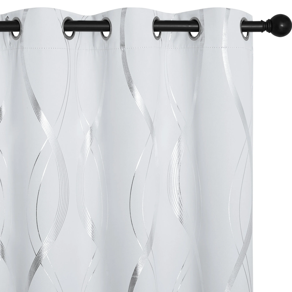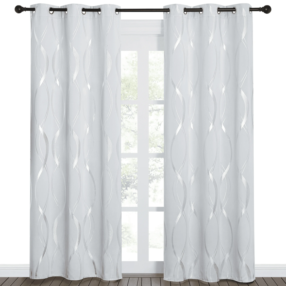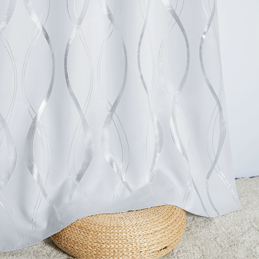 NICETOWN Blackout Curtains Long 2 Panles Elegant Wave Line Foil Print Design Window Drapes Energy Saving Light Blocking Curtains for Bedroom Blackout curtains for bedroom, the combination of casual elegance, light luxury and modern sense adds a fashionable and comfortable atmosphere to the interior. Living room curtains with printed and silver wavy stripe designs, unique and beautiful, can add a touch of art to the room. The bedroom curtains has the functions of shading, constant temperature and noise reduction to maintain a comfortable living environment. Curtains for bedroom black out are made of high-quality fabric, room darkening curtains are thick, soft, drapery, very pleasant to touch, and free from smell. Suitable for a variety of places and easy to maintain. Let you enjoy comfort and beauty at the same time, but also get a practical experience. Fabric Material: Polyester, Polyester Blend Curtains Design:Wave Line Foil Print Design;Silver grommet; Kinitted fabric; Effective shading; Thermal insulated; Functions: Privacy protection, Blackout effect, Balance Temperature, Easy to install and slide Grommet Size:1.6 inch inner diameter(4cm) Occasions: Living room, Bedroom, Dining room, Kids room, Home offices, Family rooms, Studio or Office. Packaging: 2 panels per package Amazing Material: Blackout panels are made of high-quality polyester fabric. Imported, they are silky, soft, drapery and soft to the touch. Featuring quality stitch work and aligned hem. Unique Design: Blackout curtains for living room with printed and silver wavy stripe design, unique and beautiful, can add a touch of art to the room. BLACKOUT & PRIVACY: Curtains for bedroom black out can ensure 85%-99% blackout while still providing privacy for your home, these room darkening curtains are so perfect for your bedroom and living room. MULTIPLE FUNCTIONS: Curtains for bedroom are great for energy-saving and noise reduction. These thermal insulated curtains help keep the heat in the room during the winter and keep cool during the summer. Saves on home heating and cooling costs. Package & Easy Care: Included two panels. Good quality is very durable and will last for many years. Hand washable and Wash the water temperature below 86℉. Mild detergent no bleaching. Low temperature ironing. Don’t use sharp things scratching curtains.