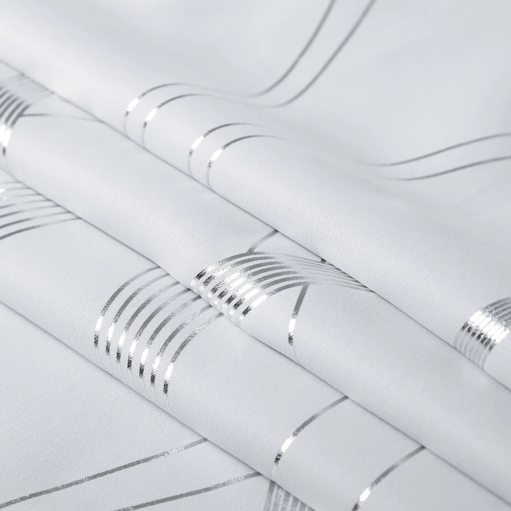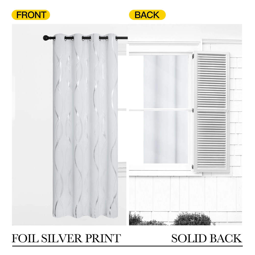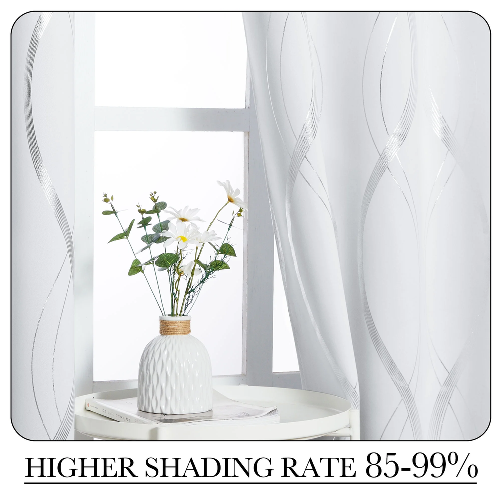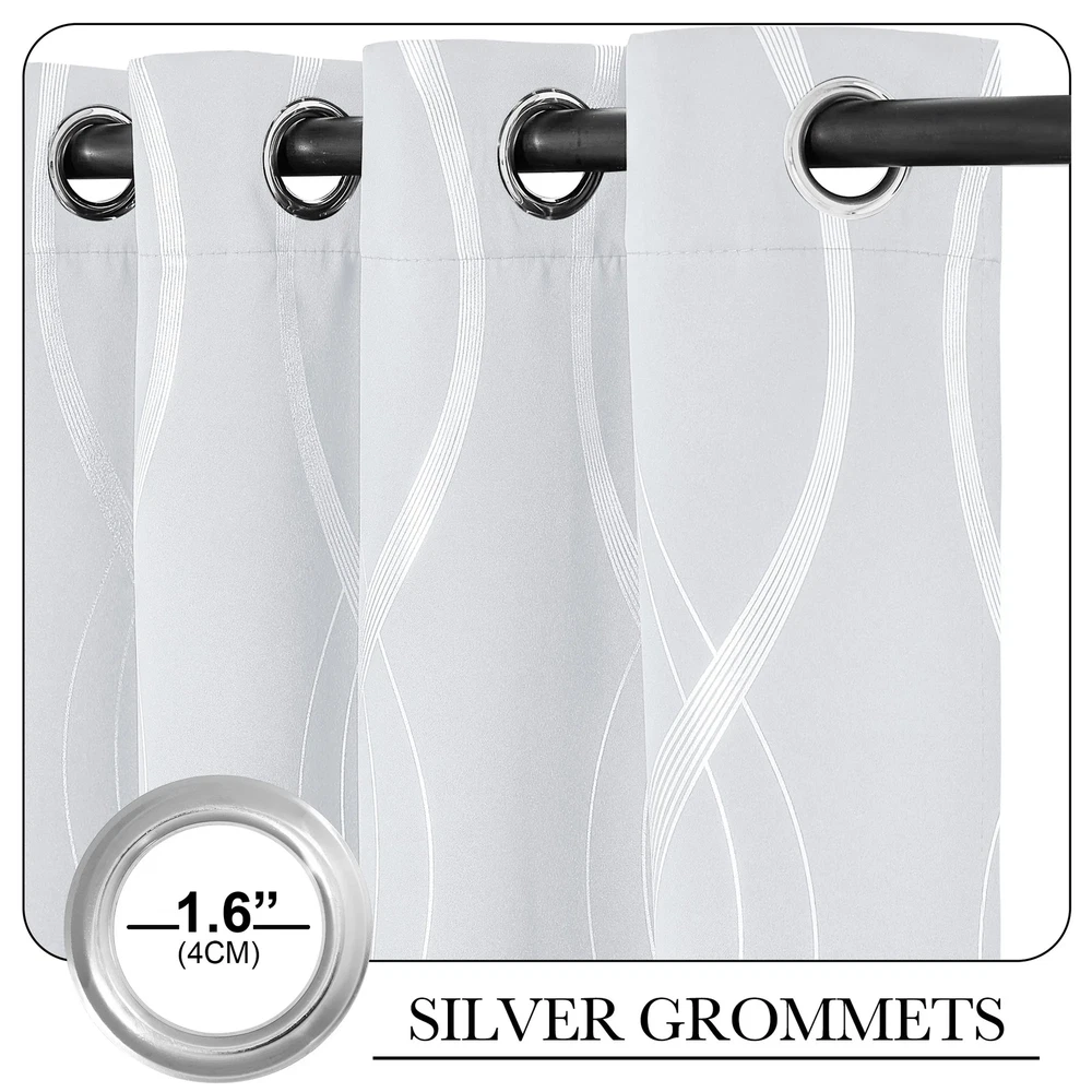 NICETOWN Blackout Curtains Long 2 Panles Elegant Wave Line Foil Print Design Window Drapes Energy Saving Light Blocking Curtains for Bedroom Blackout curtains for bedroom, the combination of casual elegance, light luxury and modern sense adds a fashionable and comfortable atmosphere to the interior. Living room curtains with printed and silver wavy stripe designs, unique and beautiful, can add a touch of art to the room. The bedroom curtains has the functions of shading, constant temperature and noise reduction to maintain a comfortable living environment. Curtains for bedroom black out are made of high-quality fabric, room darkening curtains are thick, soft, drapery, very pleasant to touch, and free from smell. Suitable for a variety of places and easy to maintain. Let you enjoy comfort and beauty at the same time, but also get a practical experience. Fabric Material: Polyester, Polyester Blend Curtains Design:Wave Line Foil Print Design;Silver grommet; Kinitted fabric; Effective shading; Thermal insulated; Functions: Privacy protection, Blackout effect, Balance Temperature, Easy to install and slide Grommet Size:1.6 inch inner diameter(4cm) Occasions: Living room, Bedroom, Dining room, Kids room, Home offices, Family rooms, Studio or Office. Packaging: 2 panels per package Amazing Material: Blackout panels are made of high-quality polyester fabric. Imported, they are silky, soft, drapery and soft to the touch. Featuring quality stitch work and aligned hem. Unique Design: Blackout curtains for living room with printed and silver wavy stripe design, unique and beautiful, can add a touch of art to the room. BLACKOUT & PRIVACY: Curtains for bedroom black out can ensure 85%-99% blackout while still providing privacy for your home, these room darkening curtains are so perfect for your bedroom and living room. MULTIPLE FUNCTIONS: Curtains for bedroom are great for energy-saving and noise reduction. These thermal insulated curtains help keep the heat in the room during the winter and keep cool during the summer. Saves on home heating and cooling costs. Package & Easy Care: Included two panels. Good quality is very durable and will last for many years. Hand washable and Wash the water temperature below 86℉. Mild detergent no bleaching. Low temperature ironing. Don’t use sharp things scratching curtains.