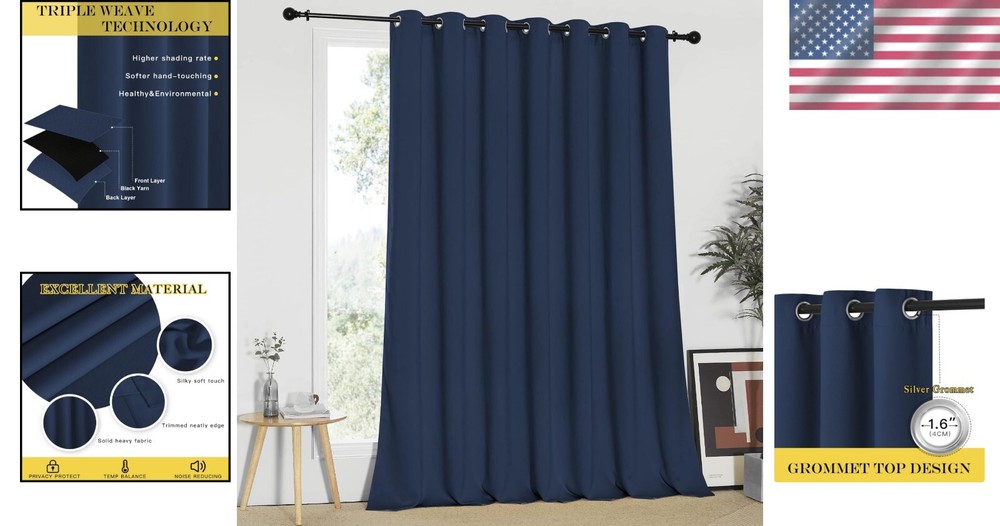 Grommet Top Navy Blackout Curtains - 100"x95" for Luxury Living & Noise Control ‹ › ‹ › ‹ › ‹ › ‹ › ‹ › ‹ › ‹ › ‹ › ‹ › Grommet Top Navy Blackout Curtains - Dimensions: 100" x 95" for Luxury Living & Noise Control - Made from high-quality polyester and imported for lasting beauty Item Info: Each blackout curtain measures W100" x L95" - length includes the grommet Features 14 grommets with a 1.6" inner diameter, suitable for most rods Soft polyester fabric provides a luxurious touch while ensuring an elegant drape Long length perfectly touches the floor for a seamless look Smart Design: Utilizes new light-block technology, beautifully sewn into two layers for maximum light blockage. Ensures the back is as stunning as the front while effectively blocking unwanted light. Multiple Functional: Thermal insulated wide width curtains can cover large windows or sliding glass doors Effectively blocks strong light, maintains climate control, and saves on energy costs Absorbs 10% of noise & dust, creating a quiet and private sanctuary for relaxation Good Choice: Ideal for anyone looking to block daylight for napping or to reduce glare on screens Available matching options such as blackout valances and sheer drapes for an elegant look Easy Care: Durable high-quality finishing designed to withstand of use Machine washable with water temperature below 86F Mild detergent recommended, no bleaching or sharp objects that could scratch curtains Why Choose Our Blackout Curtains? Transform your living space into a luxurious retreat with our Grommet Top Navy Blackout Curtains, designed not only for elegance but also for functionality. From blocking unwanted light to contributing to thermal insulation and noise reduction, these curtains are the perfect addition to any home. Experience privacy and tranquility while enhancing the aesthetics of your decor. Upgrade your windows today with curtains that promise a blend of luxury and utility. Shipping Free & Fast Shipping - We offer free shipping to most of the USA with a normal delivery time of 3-7 days. However, due to the current situation, additional delivery time (up to 3 weeks) may be required for some items. Alternative Carriers - We may use alternative carriers (e.g. USPS, FedEx, UPS, etc.) to ensure your package arrives safely and on time. Due to the use of multiple carriers, we are unable to provide a tracking number automatically. Handling Time - Orders are processed and shipped within 1-2 business days of receiving cleared payment. Shipping Restrictions - Shipping to Alaska, Hawaii, Puerto Rico, Guam, and other US territories may incur shipping charges or delivery restrictions. Please contact us before ordering, or your order can be refunded/cancelled. State Restrictions - There may be restrictions based on your state of purchase. For example, certain items may not be shipped to California due to state regulations. Contact for Tracking Updates - If you require tracking updates or have any concerns about the delivery of your order, please feel free to contact us, and we will be happy to assist you. Return 30-Day Hassle-Free Returns - We want you to be completely satisfied with your purchase. If you are not, you can return the item within 30 days of receiving it for a full refund or exchange. Easy Return Process - To start a return, simply contact us and we will provide you with a prepaid return shipping label and detailed instructions. Restocking Fee - There are no restocking fees for returns. However, the buyer is responsible for return shipping costs if the return is not due to a seller's error. Refund Processing Time - Refunds will be processed within 5 business days of receiving the returned item in its condition. Payment We accept all major credit cards, PayPal, and Apple Pay for your convenience. Your payment information is secure and encrypted to ensure a safe and seamless transaction. Please complete your payment within 3 days of purchase to avoid any delays in shipping. Feedback Your feedback is extremely important to us. We strive to provide the best products and customer service possible. If you are satisfied with your purchase, please take a moment to leave us a positive review. If you have any concerns or issues with your order, please contact us before leaving negative feedback. We are committed to resolving any problems and ensuring your satisfaction. Contact Us If you have any questions or concerns, please feel free to out to our customer support team. You can contact us through the eBay messaging system. We are available Monday to Friday, 9:00 am to 5:00 pm EST, and we will do our best to respond to your inquiry within 24 hours. Buy it now and enjoy a pleasant shopping experience! Unit Quantity: 1 Features: Blackout,Insulated,Noise Reduction,Thermal Insulated,Light Block Technology Department: Adults,Unisex Care Instructions: Easy Care,Machine Wash Type: Panels Color: Navy Material: Polyester Pattern: Solid Transparency: Blackout Room: Living Room Style: Modern Curtain Heading: Grommets Mounting: Wall Mounted Size: 100 x 95 inches Item Weight: Light Theme: Fashion Compatible Window Type: Sliding Glass Door Smart Home Compatibility: No Smart Home Protocol: None Adjustability: None Unit Type: Unit