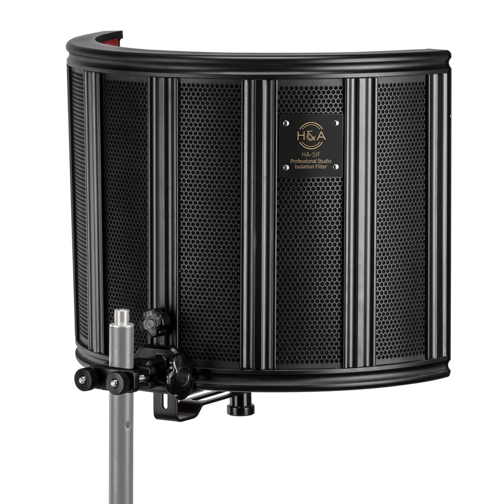 HA Studio Isolation Filter (Red Composite, Metal Back) SKU: HASIF Mfr. Part: HA-SIF Item Includes H&A Studio Isolation Filter - 5/8" Extension Stud - H&A 1 Year Limited Warranty Description A pinnacle of professional recording excellence, the H&A Studio Isolation Filter offers an unrivaled solution for achieving pristine audio capture in any environment. Constructed with a robust semi-circular anodized aluminum frame, this filter is not only durable but also stylish, with its eye-catching red composite material that adds a touch of elegance to your studio setup. The high-density composite fiber lining is meticulously designed to absorb and minimize unwanted acoustic noise and reflections, ensuring that your recordings are crystal clear and free from disruptive sound artifacts. This makes the H&A Studio Isolation Filter an effective tool for content creators, podcasters, and music producers who demand the highest quality sound. Versatility is at the heart of this isolation filter's design. It features a universal two-piece clamp with swivel capability, allowing for easy mounting on a variety of stand types. The integrated L-shaped bracket, complemented by a 5/8" extension adapter, provides a secure and stable fit for a wide array of microphone models, including ball head, condenser, large diaphragm, small diaphragm, and universal microphones. For added convenience, the bracket can be effortlessly adjusted to the perfect height for your microphone setup and then locked into place with a knurled locking knob, ensuring that your mic remains in the optimal position throughout your recording session. By choosing the H&A Studio Isolation Filter, you are selecting a high-quality, professional-grade tool that is celebrated for its effectiveness in delivering cleaner voice tracks and superior audio recordings. Its compatibility with numerous microphone types further cements its status as a versatile and indispensable addition to any serious audio professional's arsenal. Features Four layers of acoustic isolation Allows creating clean voice recordings High-density composite fiber Vented back reduces sonic coloration Prevents bounce-back reflections Vertically adjustable microphone mount Strong perforated aluminum frame Integrated clamp for mounting to stands Mount brackets, lock screws, 5/8" mic extension Specifications Stand Mount Universal clamping mount Microphone Mount 5/8"-27 male Construction Anodized aluminum frame High-density composite filter Dimensions 17.25 x 13.75 x 10.5" / 43.8 x 34.9 x 26.7 cm Weight 8.3 lb / 3.75 kg WHO WE ARE Adorama is one of the nation's largest Photographic retail and mail order suppliers. For over 35 years we have been serving professionals as well as amateurs in the photographic, video, digital imaging and telescope fields. We offer the best combination of quality services, vast selection, knowledgeable staff, and competitive pricing. Adorama Camera is your #1 source for the best and newest products in the photographic industry, and the largest inventory of items such as Digital Cameras, Digital Camera Accessories, Memory Cards, 35mm Cameras, Medium Format Cameras, Lenses, Video Cameras, TV's, MP3 Players, Binoculars, Telescopes, Scanners, Inkjet, Dye-Sub & Laser Printers, Office Fax machines, Shredders, Projectors, Inkjet Paper, Photographic Accessories, Filters, Batteries, Cases, Tripods, Flashes, Lighting & Studio Equipment, Film, Darkroom Products and Audio Video Equipment. All new equipment comes with all of the factory included accessories, including a full manufacturer's warranty, unless otherwise noted. We only post items that are in-stock and ready to ship. PAYMENT In an effort to comply with our Authorized Dealer contracts with the manufacturers and to best control our inventory levels we reserve the right to limit quantities or cancel orders to Resellers and Exporters. Please note: Inventory is not reserved until the item is paid for. Please include a phone number as the carriers and our Trucking Companies require it. INTERNATIONAL International taxes and duties: International shipments may be subject to import fees, duties and taxes, which are levied once a shipment reaches the respective country, in addition to the brokerage fees/custom clearance charges which may be imposed by the carrier. These charges must be borne by the recipient. Adorama has no control over these charges and cannot predict what they might be. Orders shipped using eBays (GSP) "Global Shipping Platform" have already paid their taxes and must contact eBay directly for any issues. SHIPPING Adorama's eBay store ships to the 48 Contiguous United States. We do not ship to APO & FPO, Alaska, Hawaii and Puerto Rico. We now ship many items to Canada, parts of Europe and Australia. If the item does not have the option, please don't ask. We do not ship to other International locations. Items with "free shipping" are only shipped free to the 48 contiguous United States. Combined shipping is available by using the Add-to-Cart button and confirming that the shipping carriers for each item are the same BEFORE making the Payment. eBay's new checkout will then consolidate your items and present to you the better shipping rates. All orders must be shipped with a printed invoice included. We can not ship orders without the invoice or a lower value invoice. Gift Invoices may be requested if you contact us immediately after payment during business hours. No guarantees for other times. Shipment errors due to a bad address entered by the buyer and will not be credited for shipping charges if returned or at all if lost or abandoned by the carrier. We supply tracking information directly to your eBay account within 24 hours after the shipment leaves our warehouse. Please make sure to check your eBay email address and that it does not go into spam or junk. Approved Change Requests may not be updated on eBays portal, please check the emails. Returns For the first 30 days from date of receipt of your pur